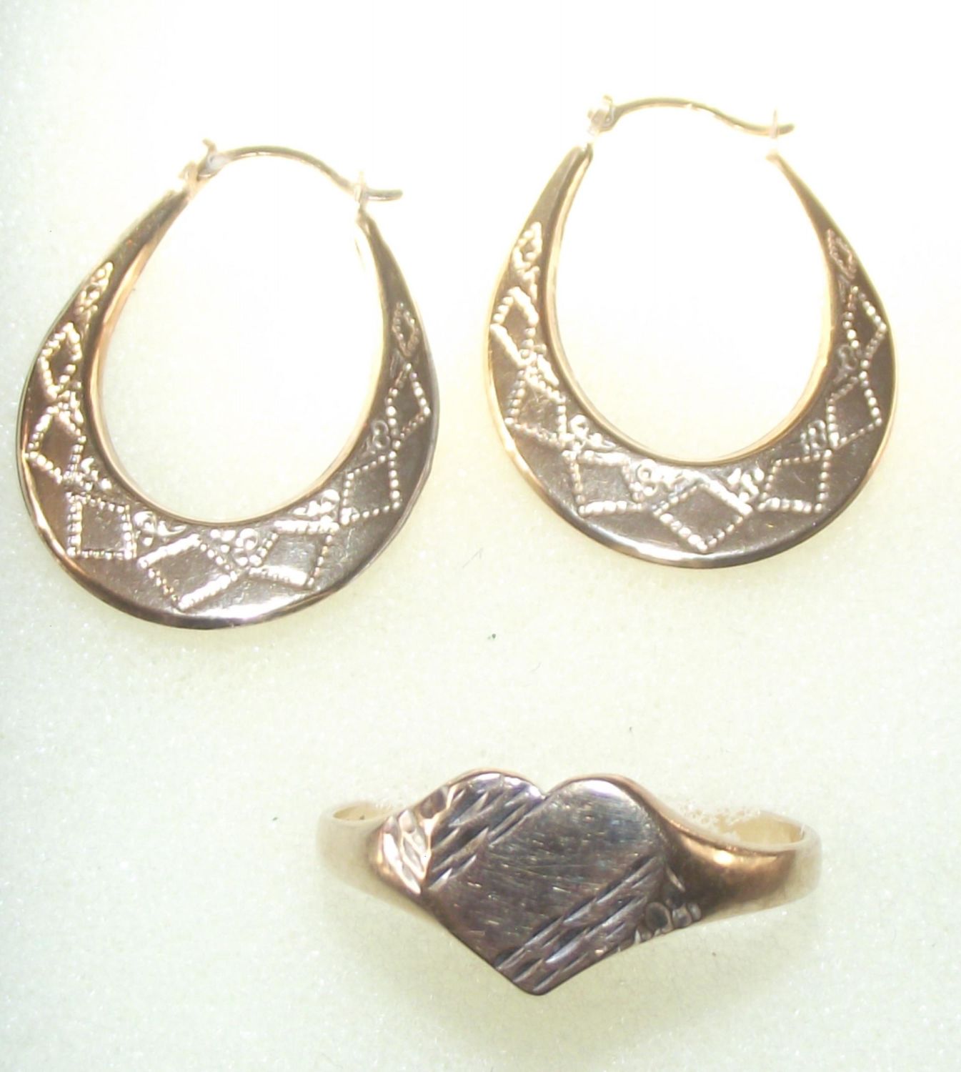 Ladies heart 9ct gold signet ring size U + pair of 9ct creole earrings 2.8g approx.