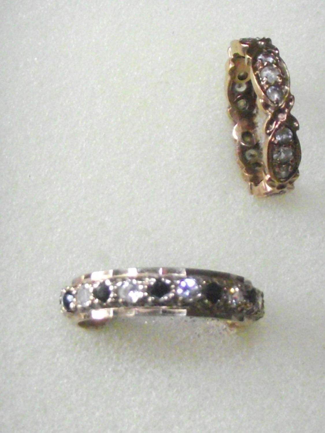 2x ladies 9ct gold stone set eternity style rings 5.2 g approx. size P & J