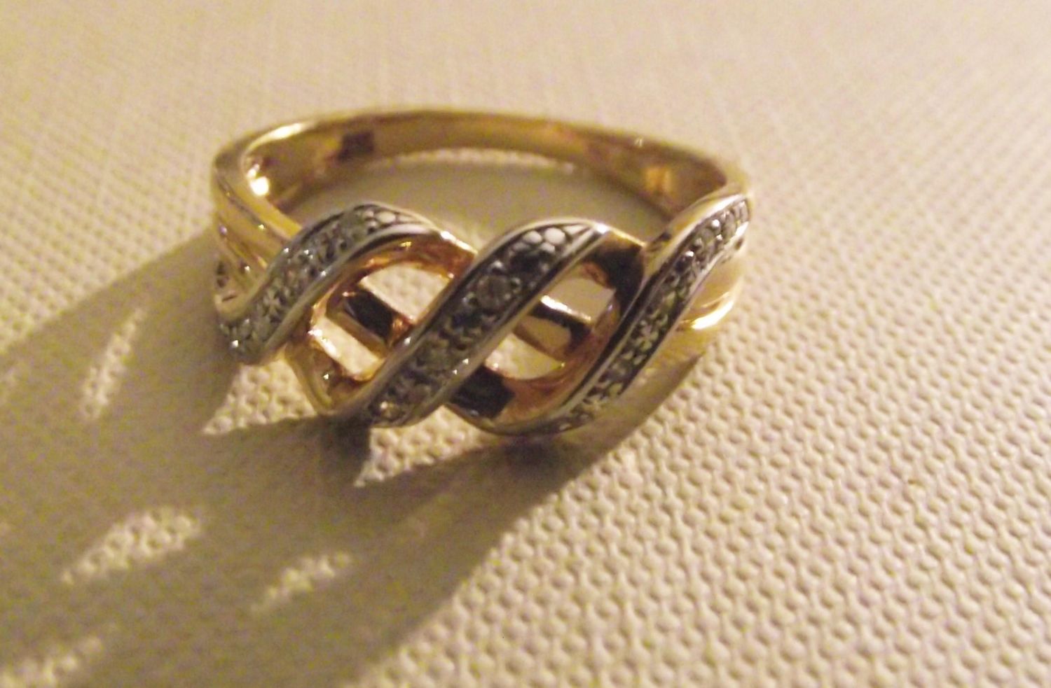 Superb quality ladies 9ct gold diamond set crossover Celtic style ring. Marked 375 Dia 2.3g approx. size O