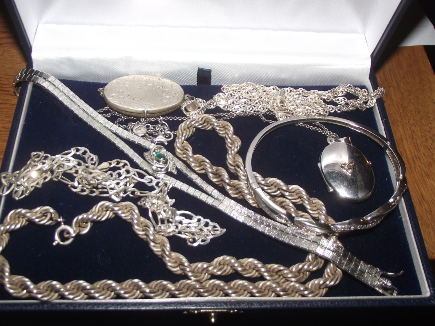 Good selection of silver jewellery inc 2 lockets and chains , necklace bracelet, bangle 82.5g approx.