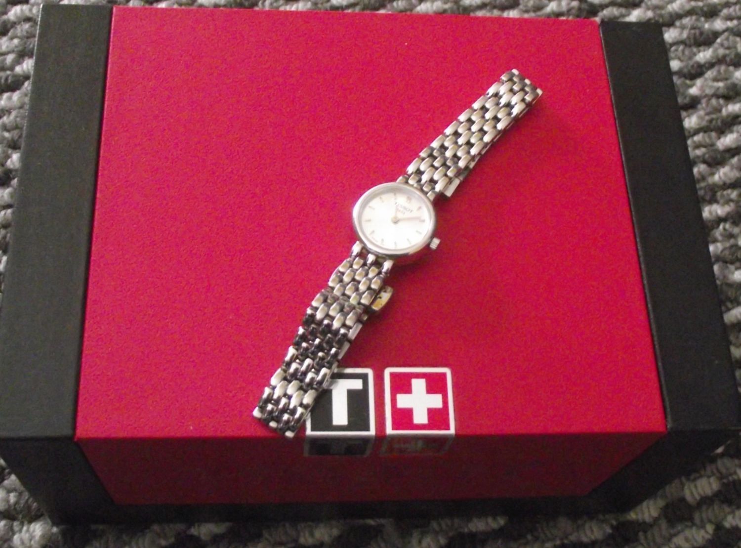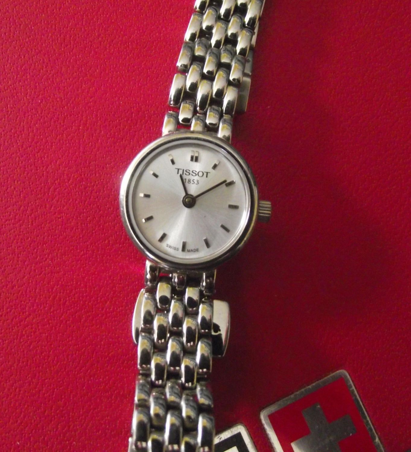 Ladies Tissot no 1853 wrist watch 15mm dial, high-shine stainless steel, set around a silver dial with understated baton hour markers. Slim line bracelet fastener with original box