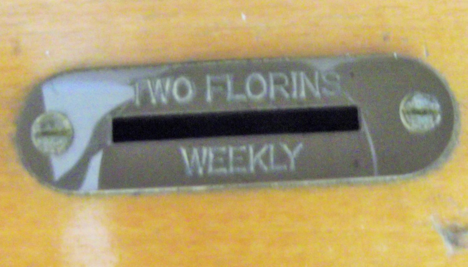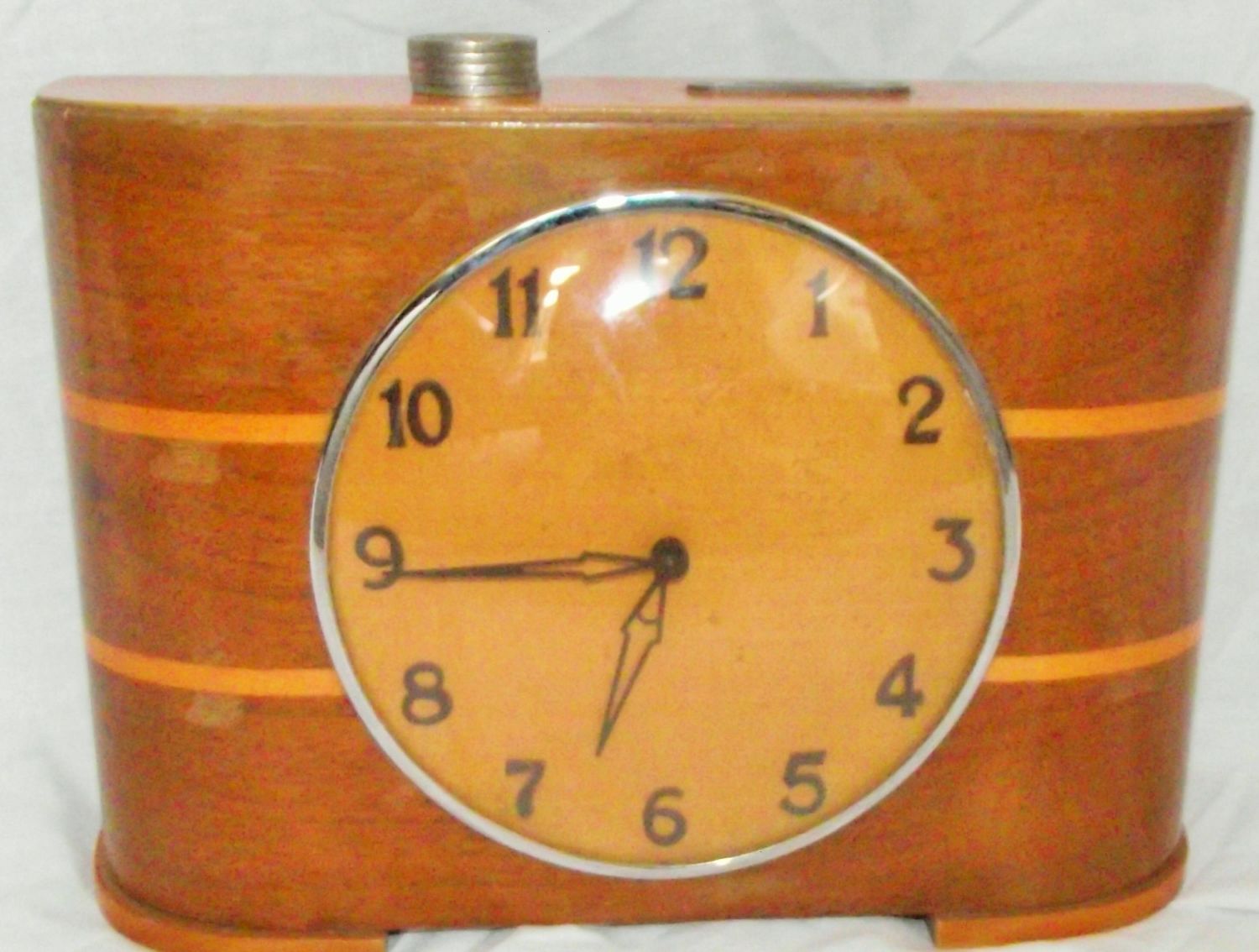 The Time Savings Piggy Bank Clock made in England c.1940s-50s, Coin Operated Two florins weekly (working )