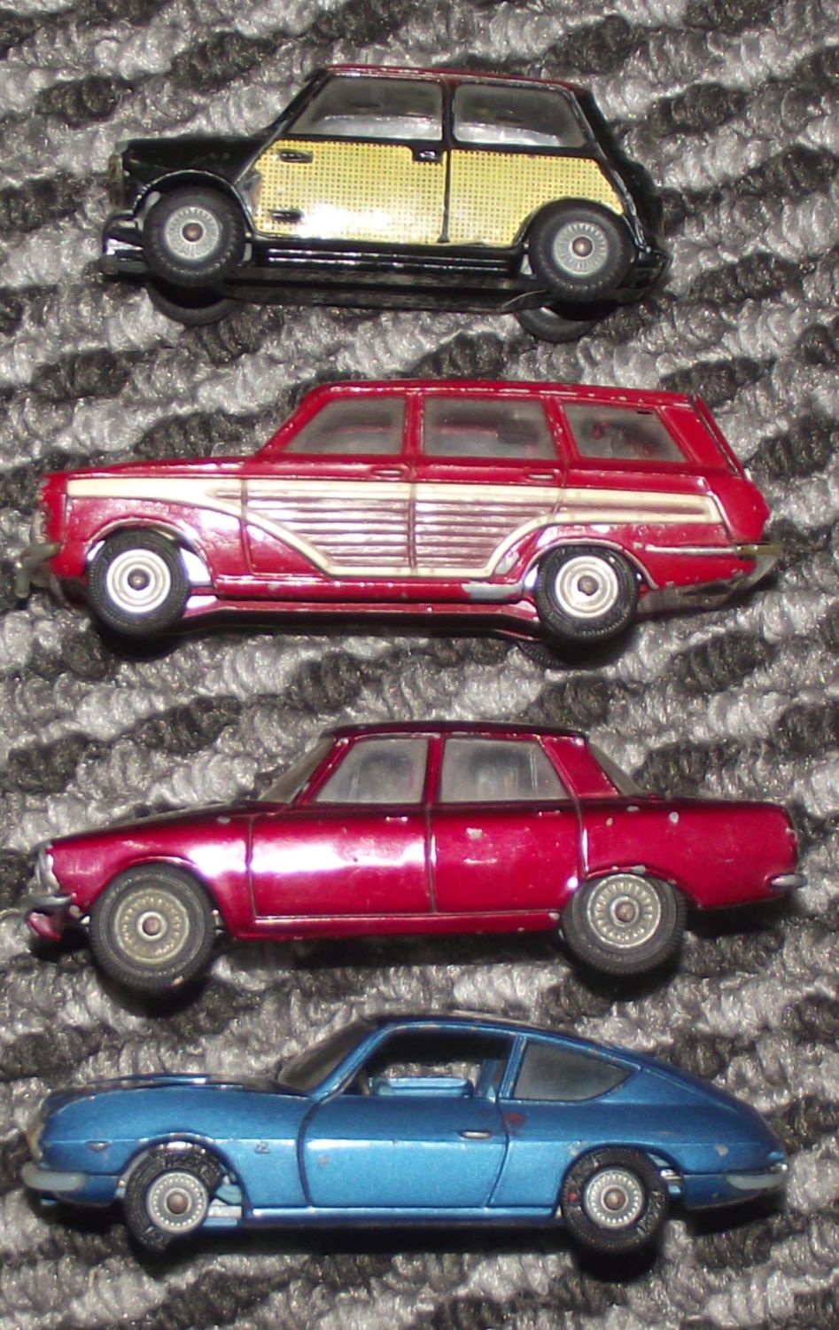 4x Rare model Corgi cars – BMC mini Cooper + Corgi Rover 2000 +Corgi Lancia fulvia sport zagato( damage tyre) Corgi Morris Mini Cooper with deluxe wickerwork doors +Corgi Ford Consul Cortina super Estate