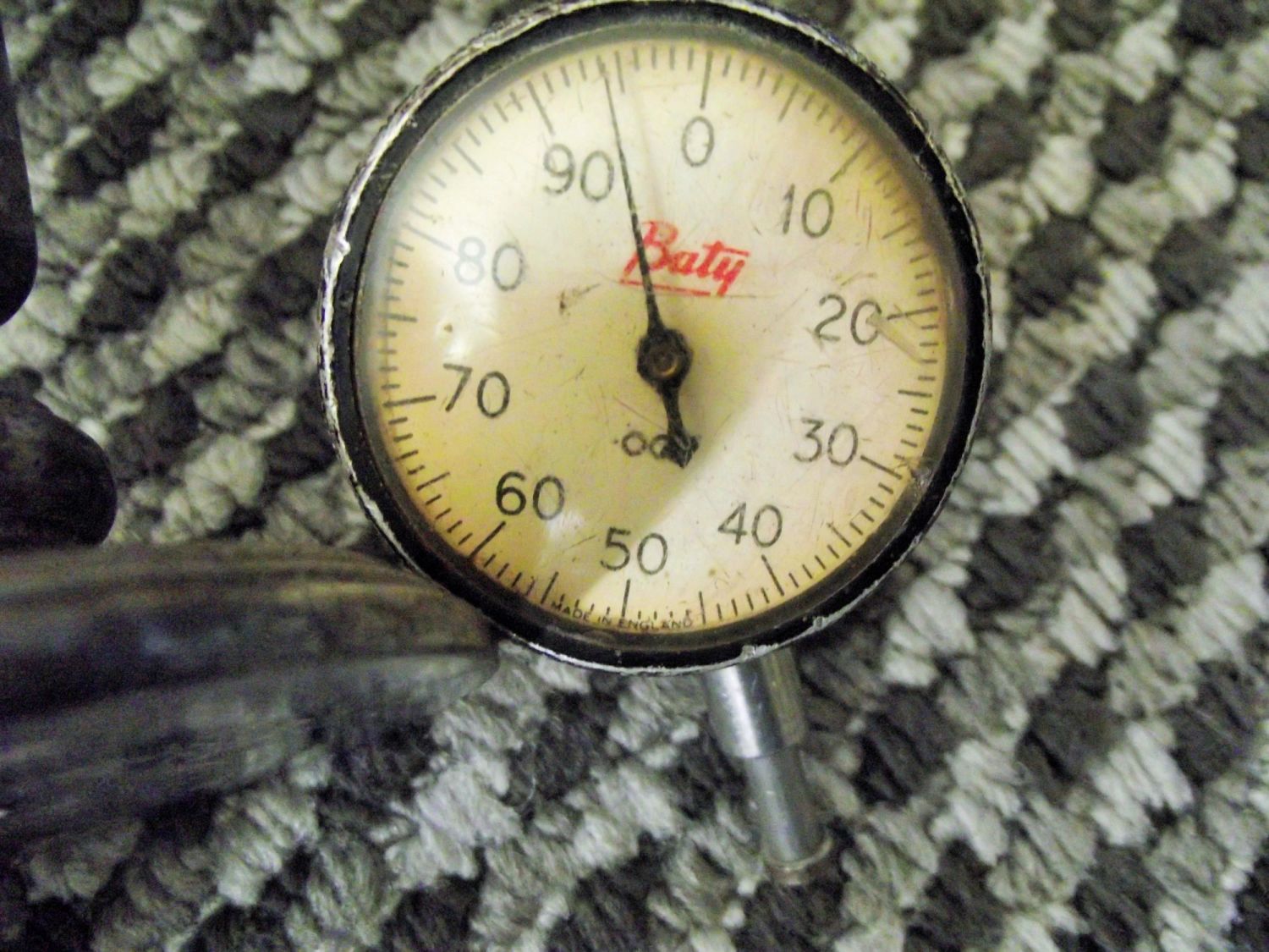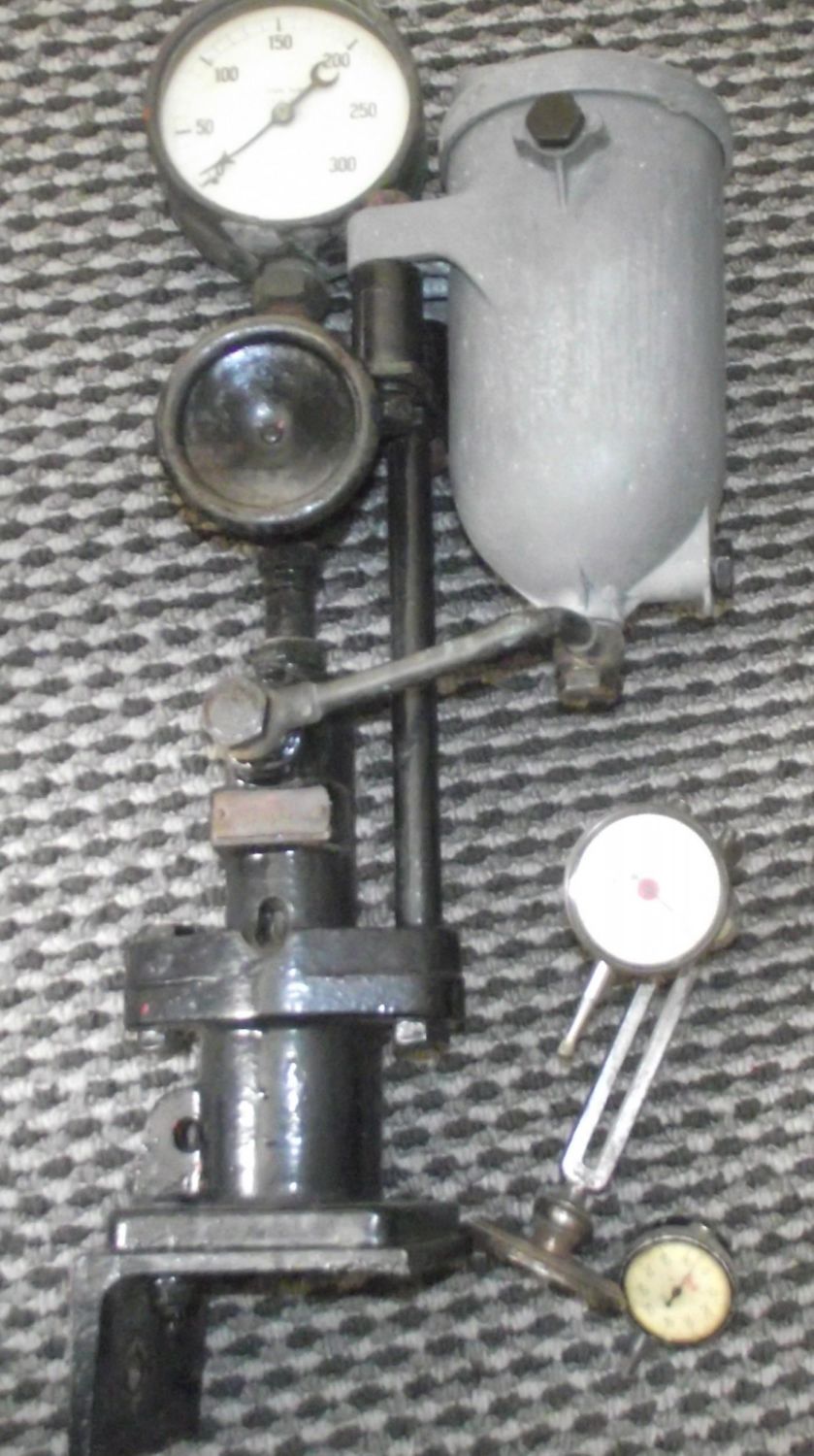 Vintage Mercer imperial measuring gauge mounted on stainless steel bracket + vintage Batty 001 gauge + large CAV ET 122 PA diesel fuel injector tester