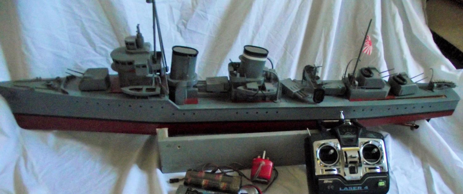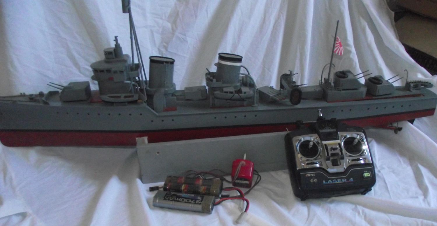 Fubuki scratch built model of a 1930s Japanese destroyer. Built of plywood powered by 2 RE385 motors Main drive batteries are 2x 7.2 volt N/mh batteries . controlled by high tech laser 4 transmitter receiver is sanwa 40-675 mega cycles ( working order )