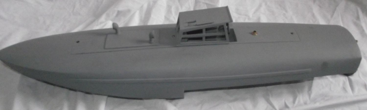 Scratch built model speed boat ( unfinished unpainted model) has propeller fitted