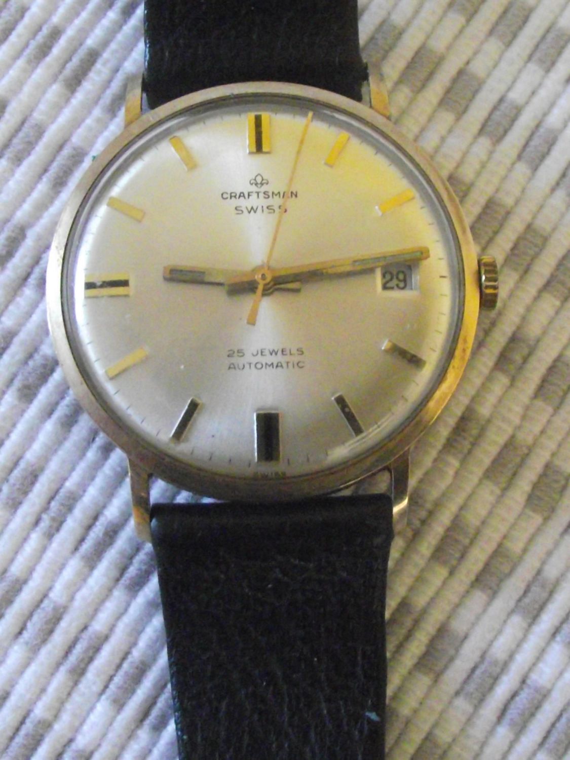 Vintage presentation ( 26 years service ) Gold plated wind up Swiss Craftsmen 25 jewel auto plated wrist watch with calendar function