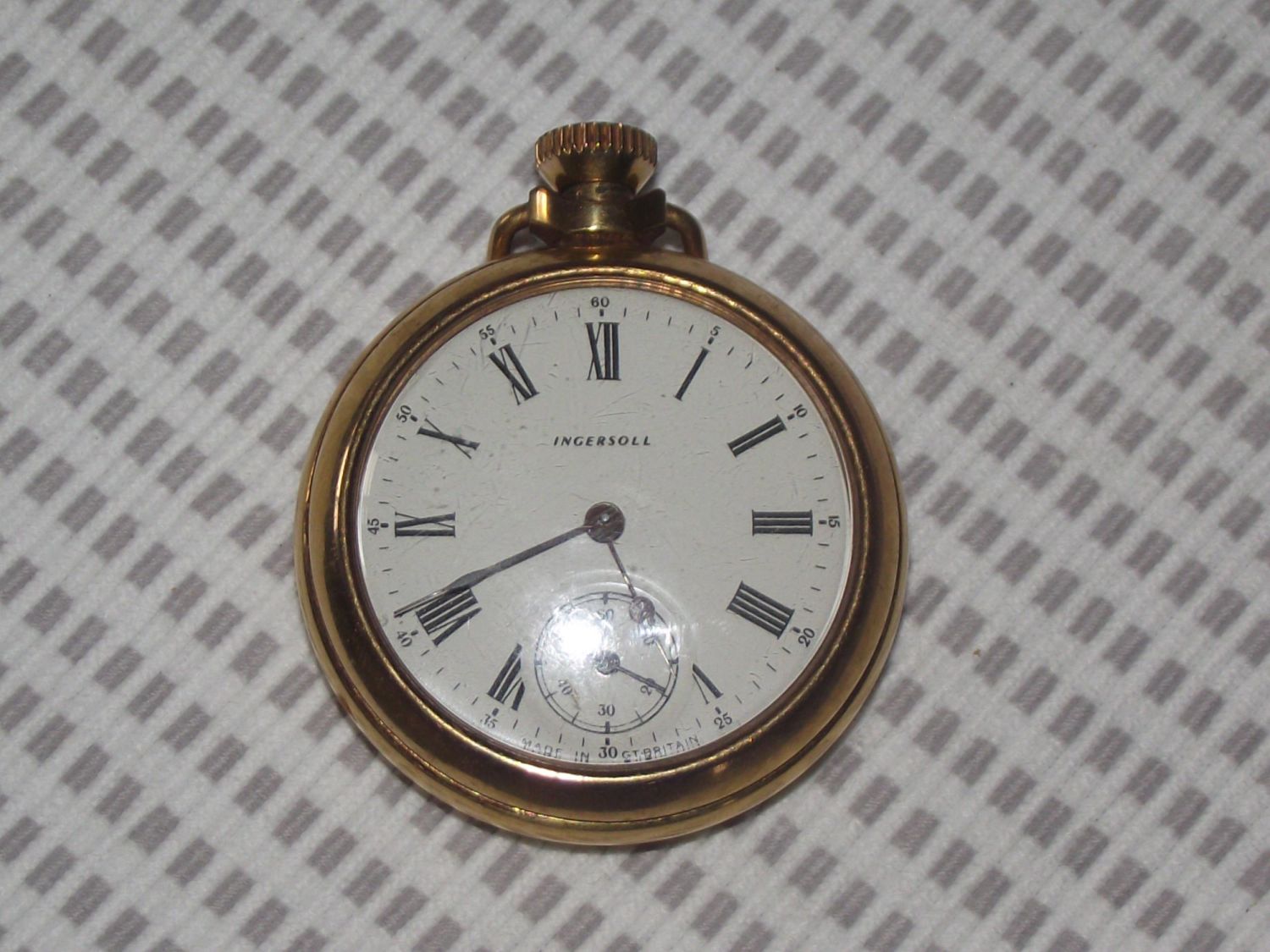 Ingersoll plated pocket watch with subsidery second dial ( seen ticking ) marked Made in Great Britain,