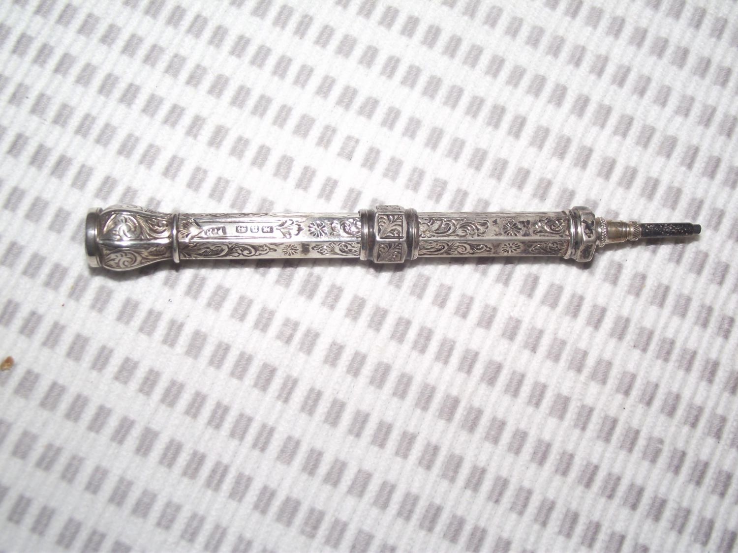 Victorian Silver propelling pencil circa 1887 maker PB with bloodstone seal top