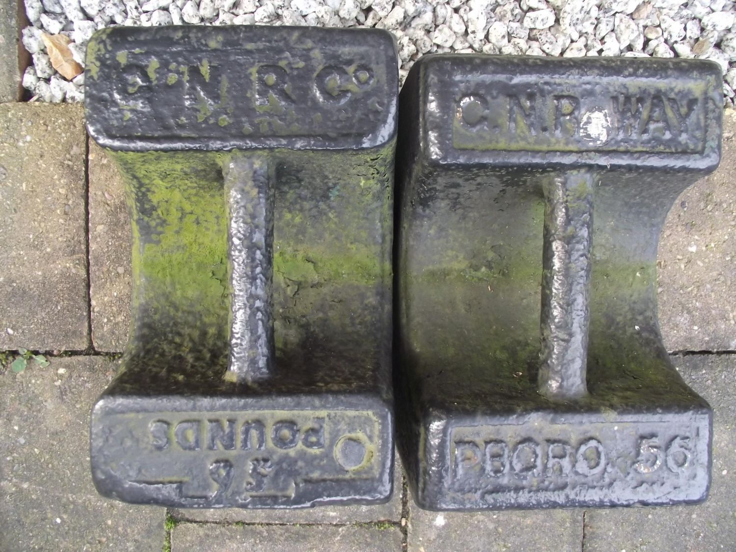 Railway interest 2 x 56lb bar weights Stamped GNR co & GNR Way P BORO.56 . (G N R Created 26th June 1846, the GNR ran from Kings Cross to Doncaster. It was absorbed into the London and North Eastern Railway (LNER) on its formation at 1st Jan 1923)