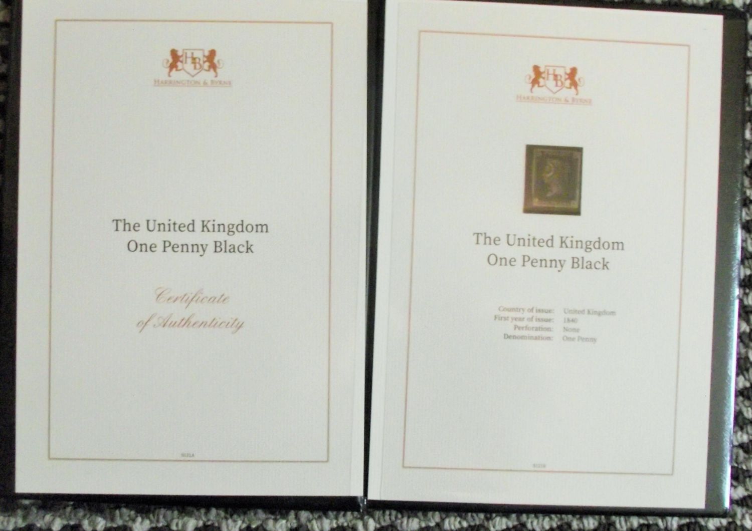 Harrington & Bryne Penny Black stamp with certificate of Authenticity in original folder