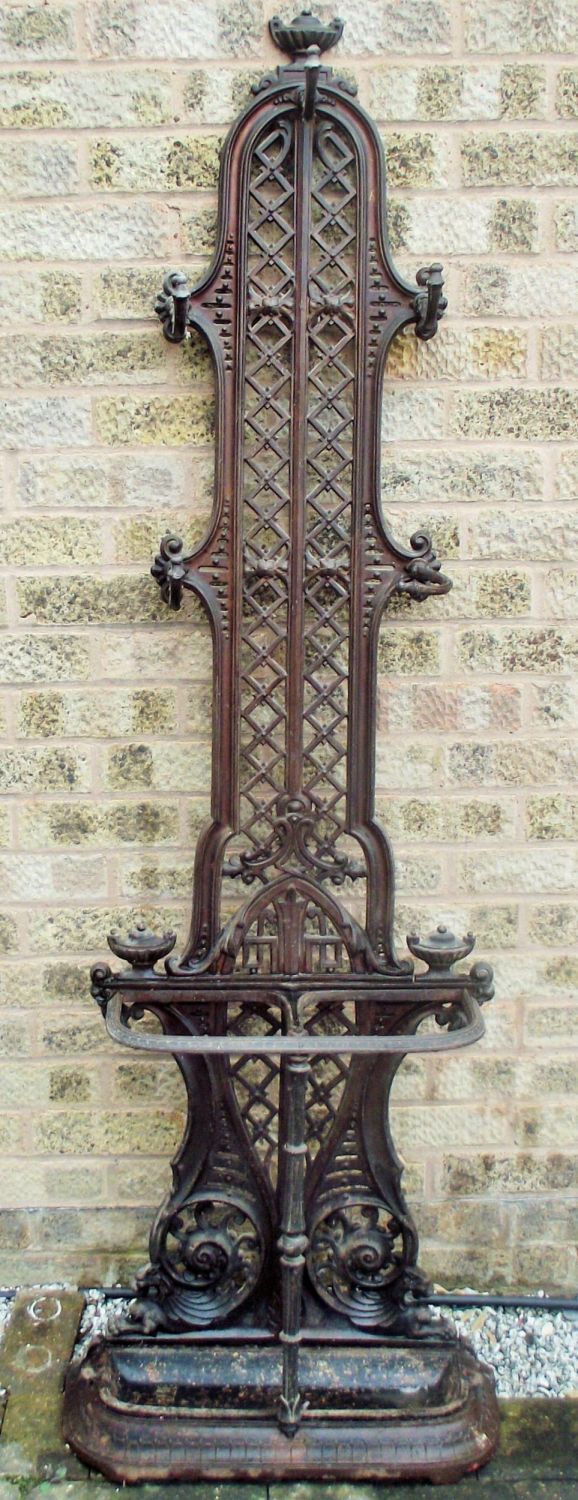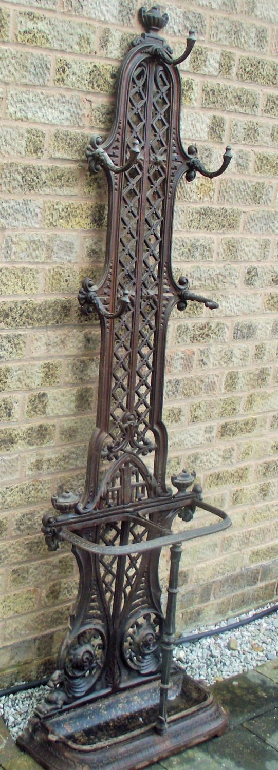 Quality heavy Victorian circa 1870 cast iron stick , umbrella,coat stand with Victorian lozenge mark to back complete with drip tray ( comes apart into 2 main pieces )
