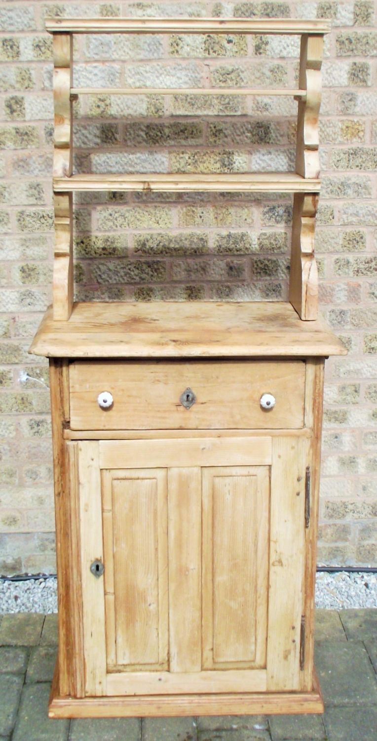Old pine farmhouse single draw single door unit with detachable plate rack back 35high 242wide 15" deep plate rack 26" high approx