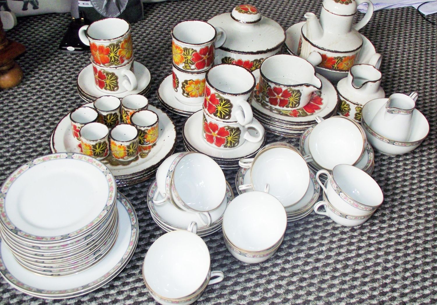 Selection of vintage Midwinter stonehenge table wares + vintage noritaki wares