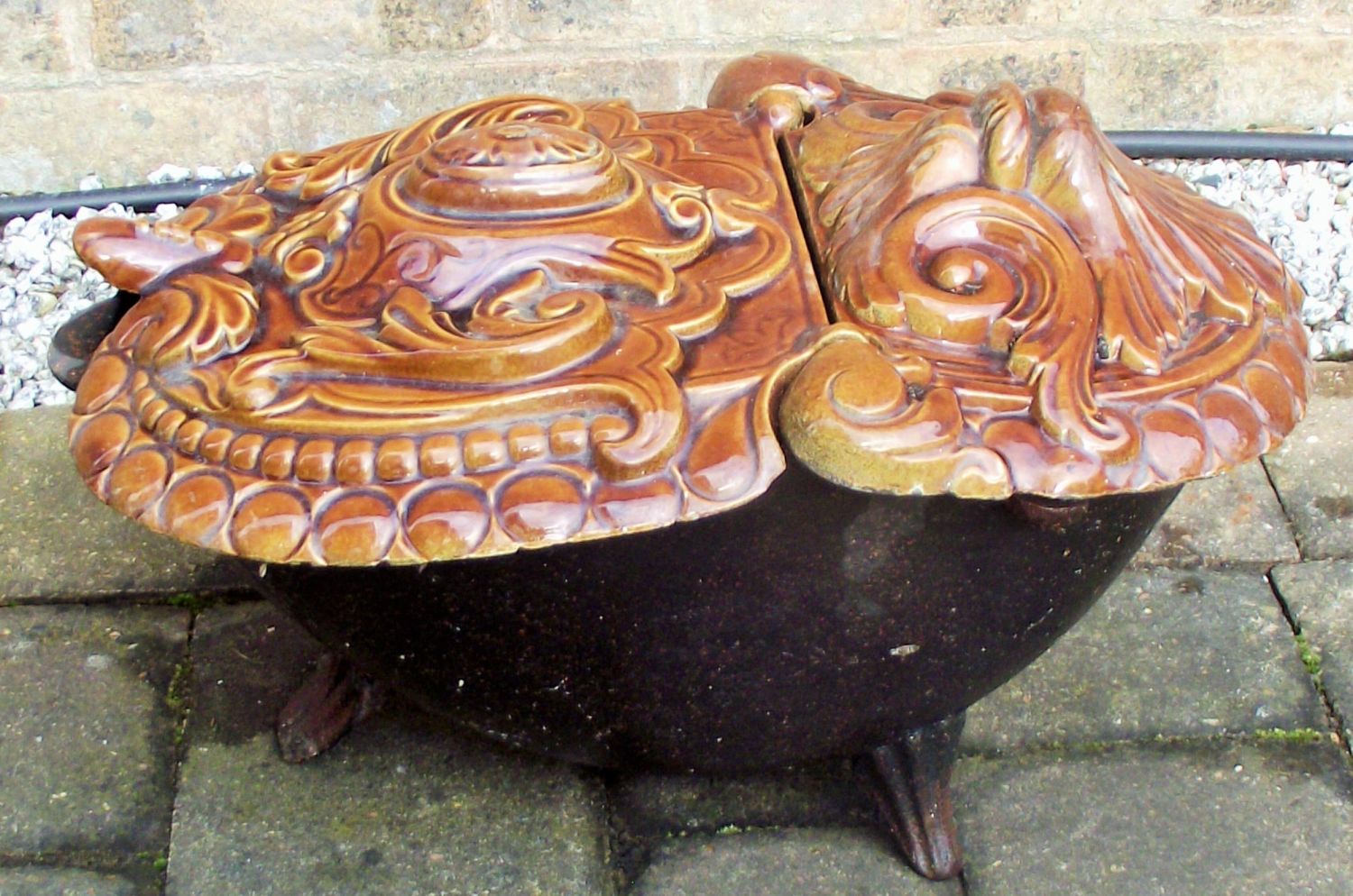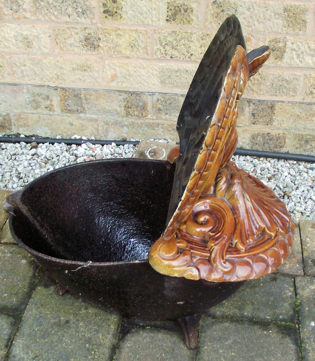 Period art neaveau shell top coal scuttle , bronze finish over iron bowl impressive high relief of swags & garlands circa 1900