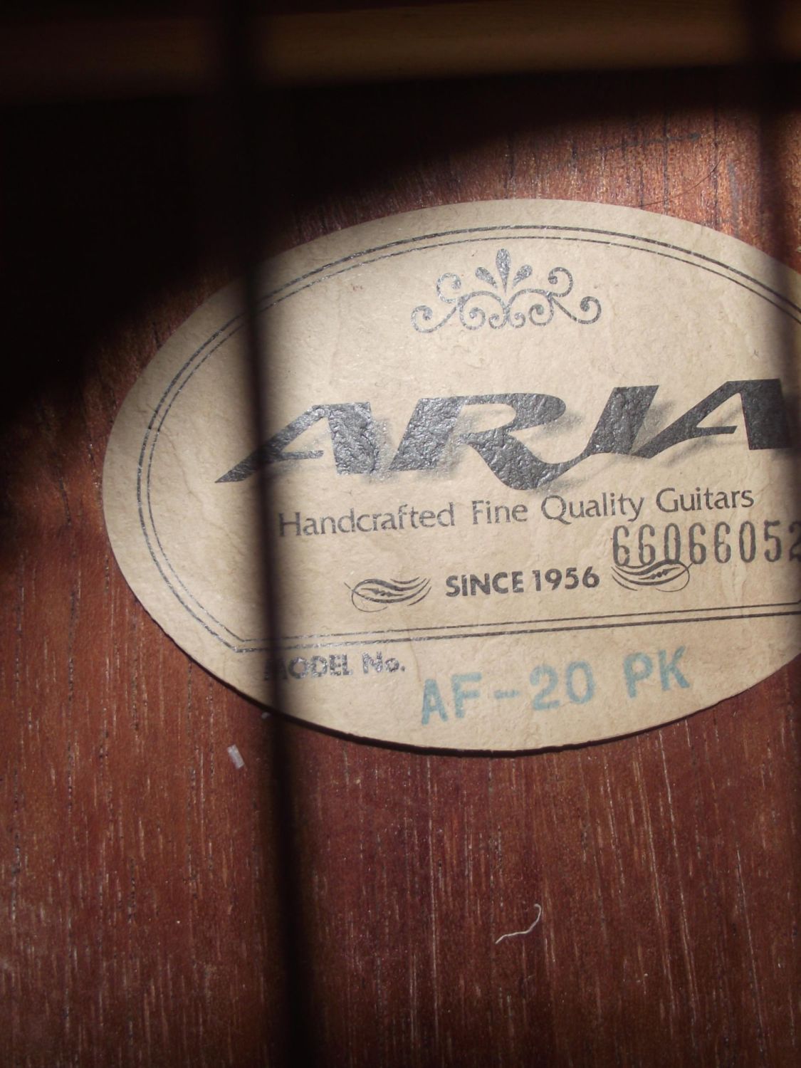 Rare Aria Pink 6 steel string acoustic guitar label internally Aria AF-20PK No 66066052