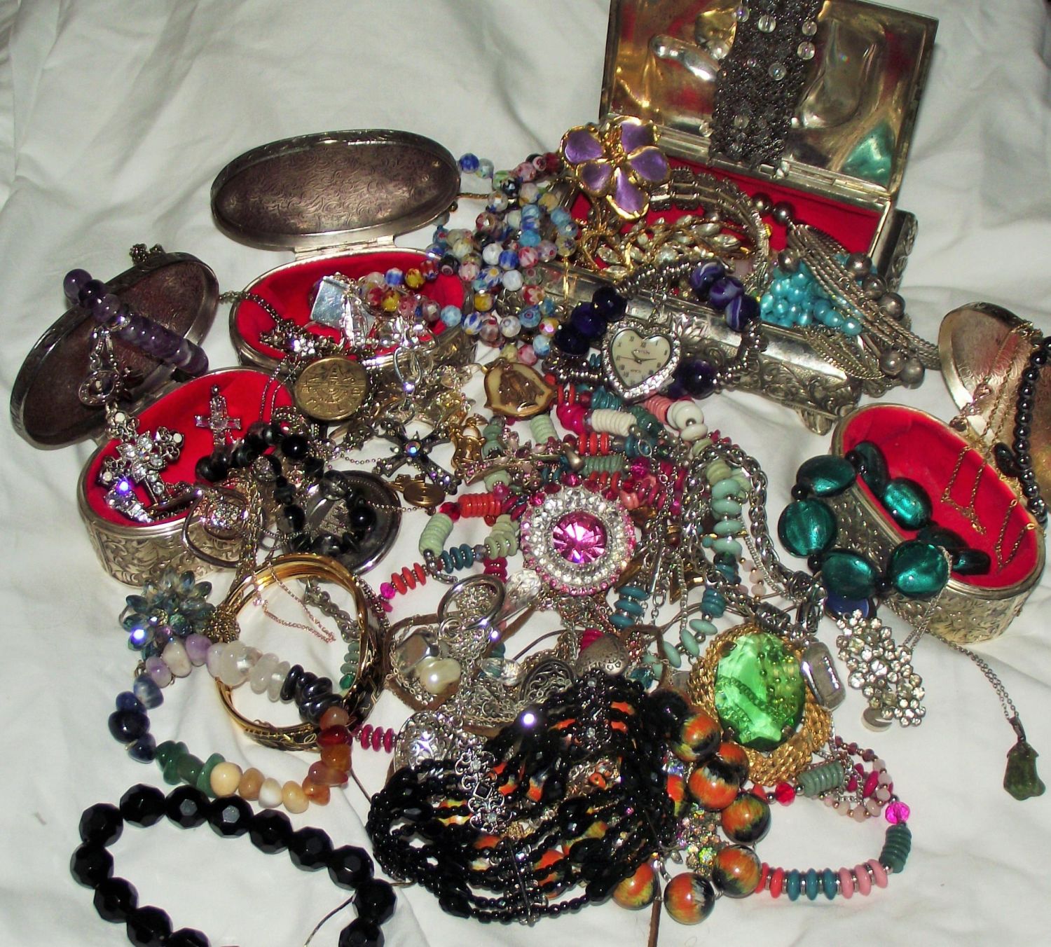 Collection of assorted costume jewellery + 4 jewellery boxes 3 of them silver plated by Viners