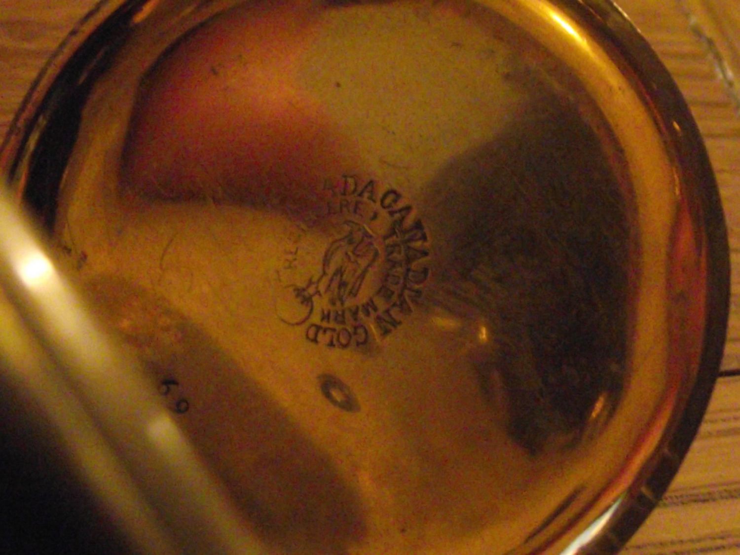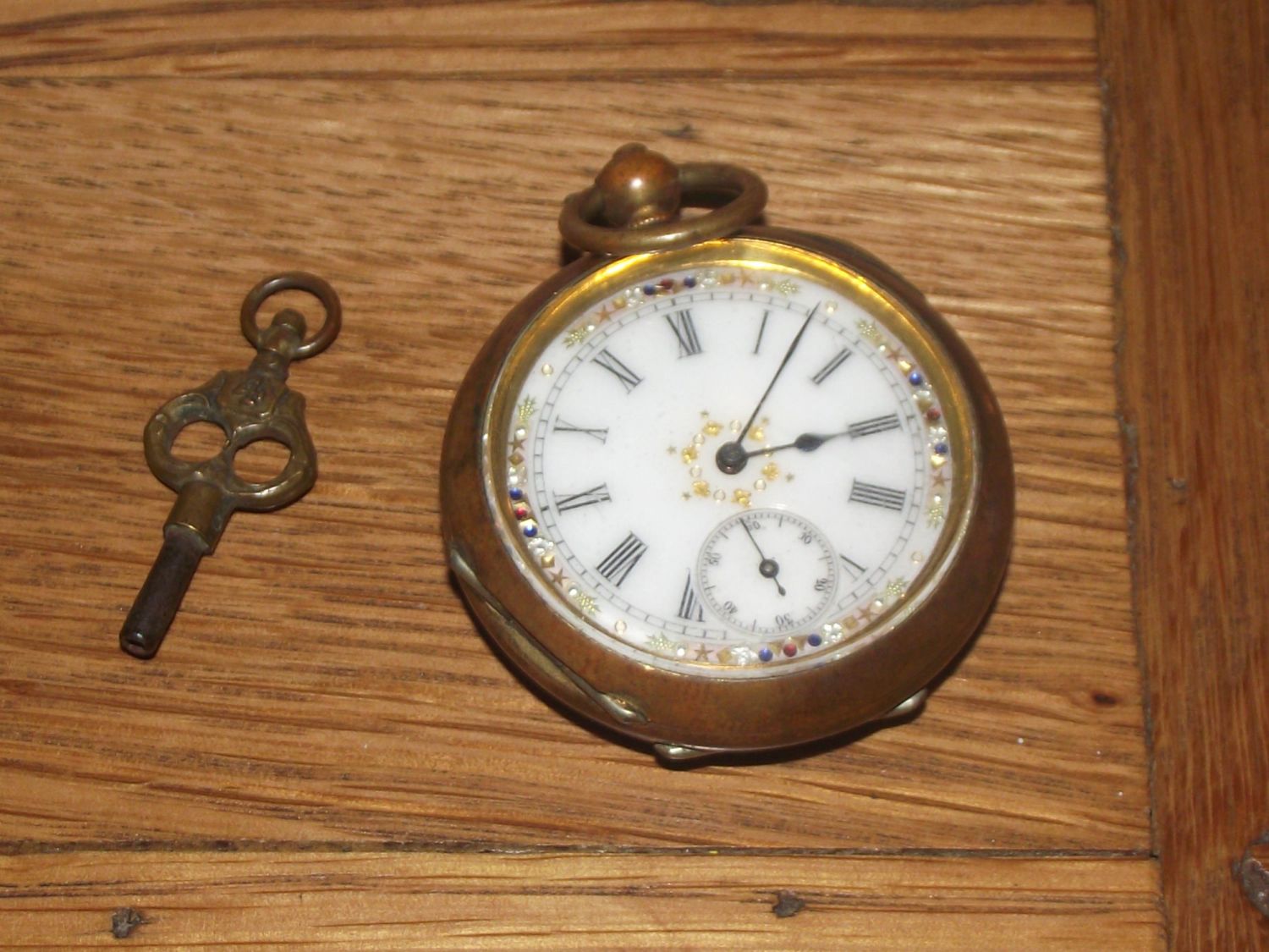 Lada Canada 40mm gold plated fob key wind fob watch decorated enamel face with subsidiary second dial with key ( seen working )