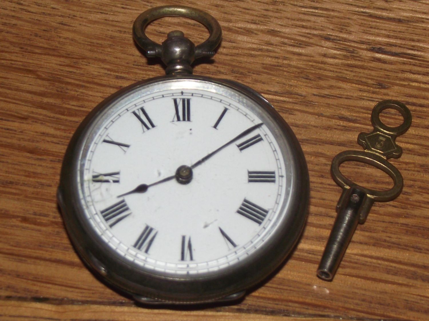 Silver 35mm Argent key wind fob watch with key ( slight damage to edge of dial ) seen working