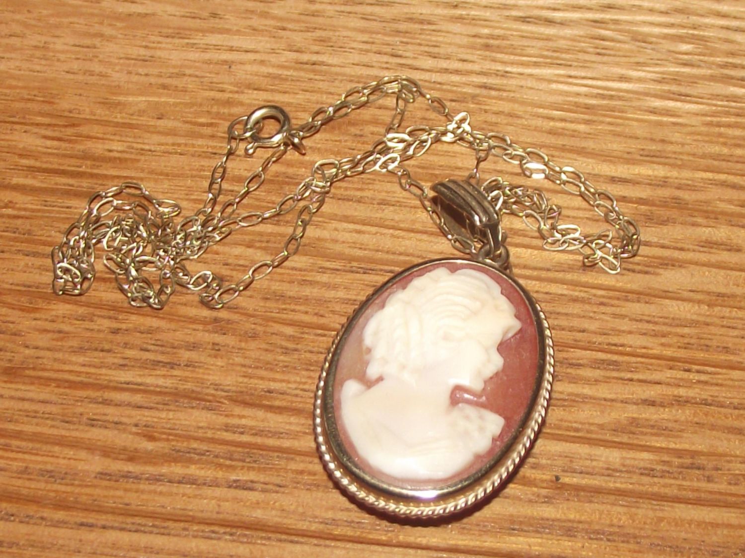 9ct gold cameo with 9ct gold 18" chain 2.5g approx