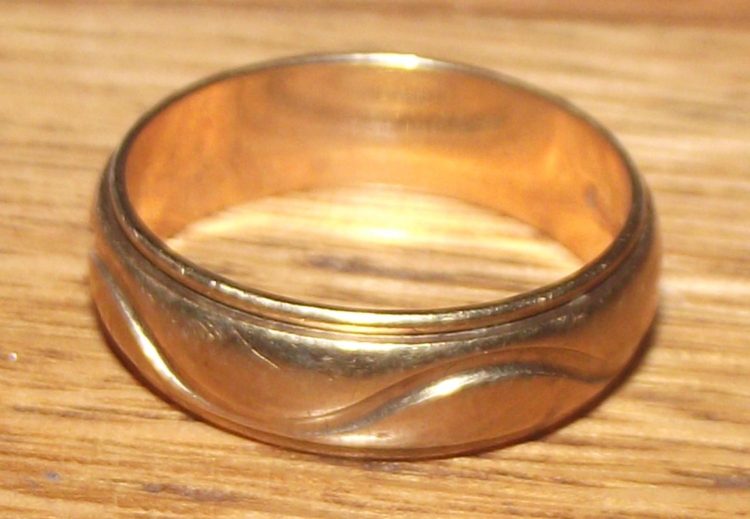 Ladies 9ct gold band with flowing ribbon design 2.8g approx size K