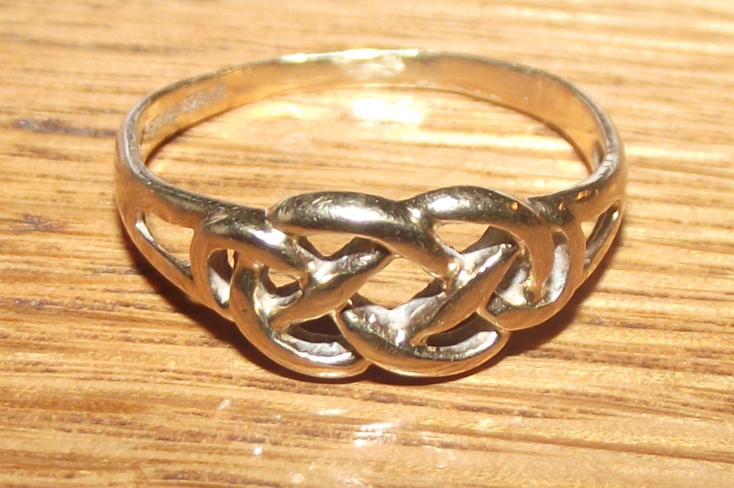 Ladies 9ct gold half celtic band style ring size O 1.6g approx