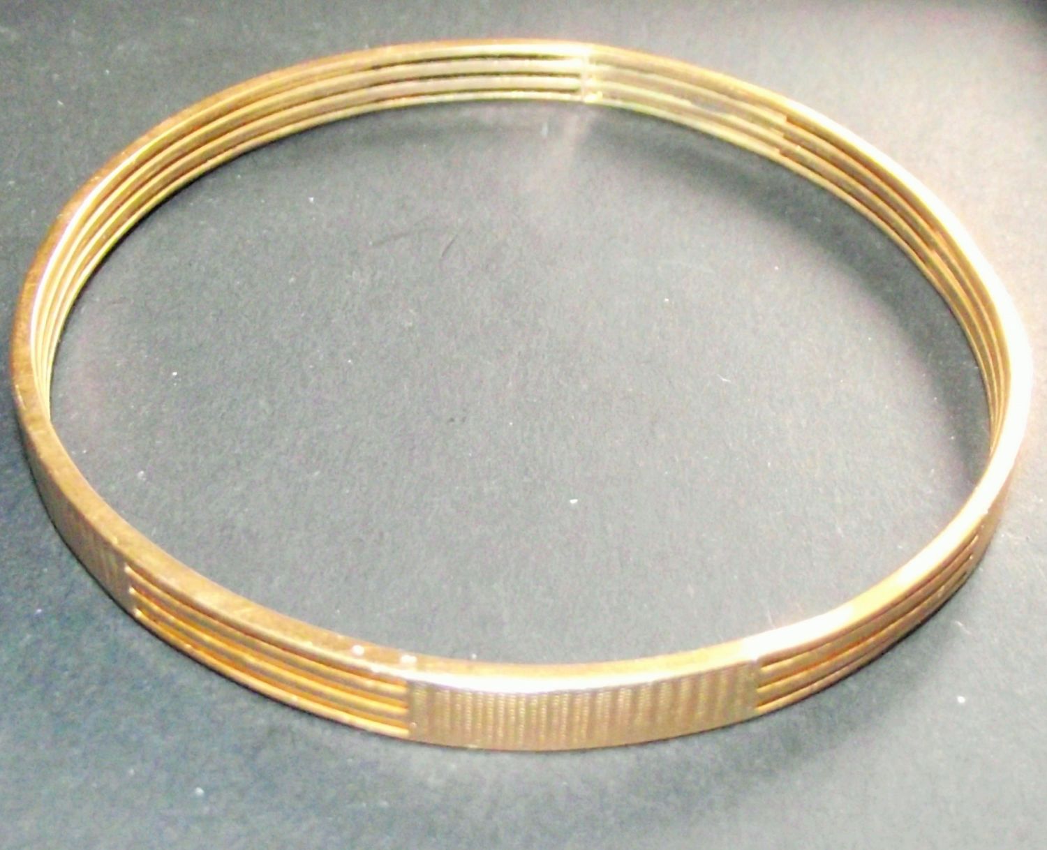 9ct gold bangle with pierce work sides and engraving 17.6g approx