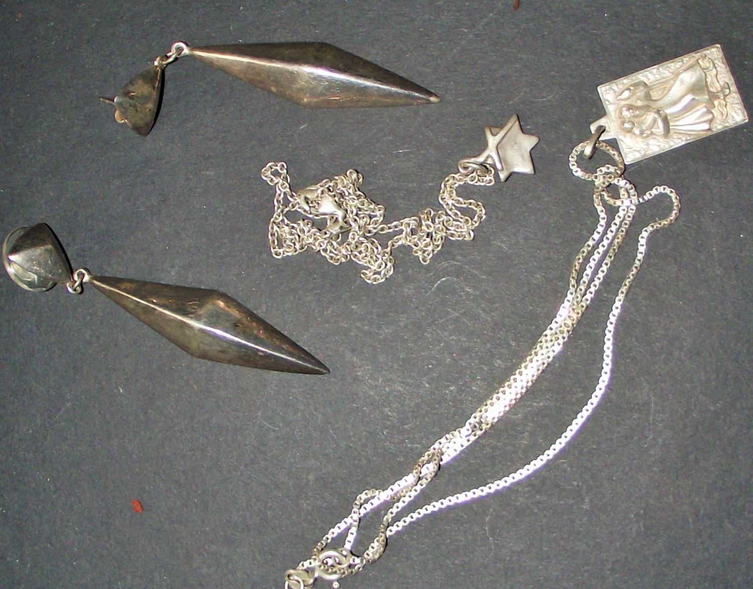 sterling silver St christopher on silver chain + pair of vintage 925 silver earrings + 925 chain & star pendant 22.6g approx