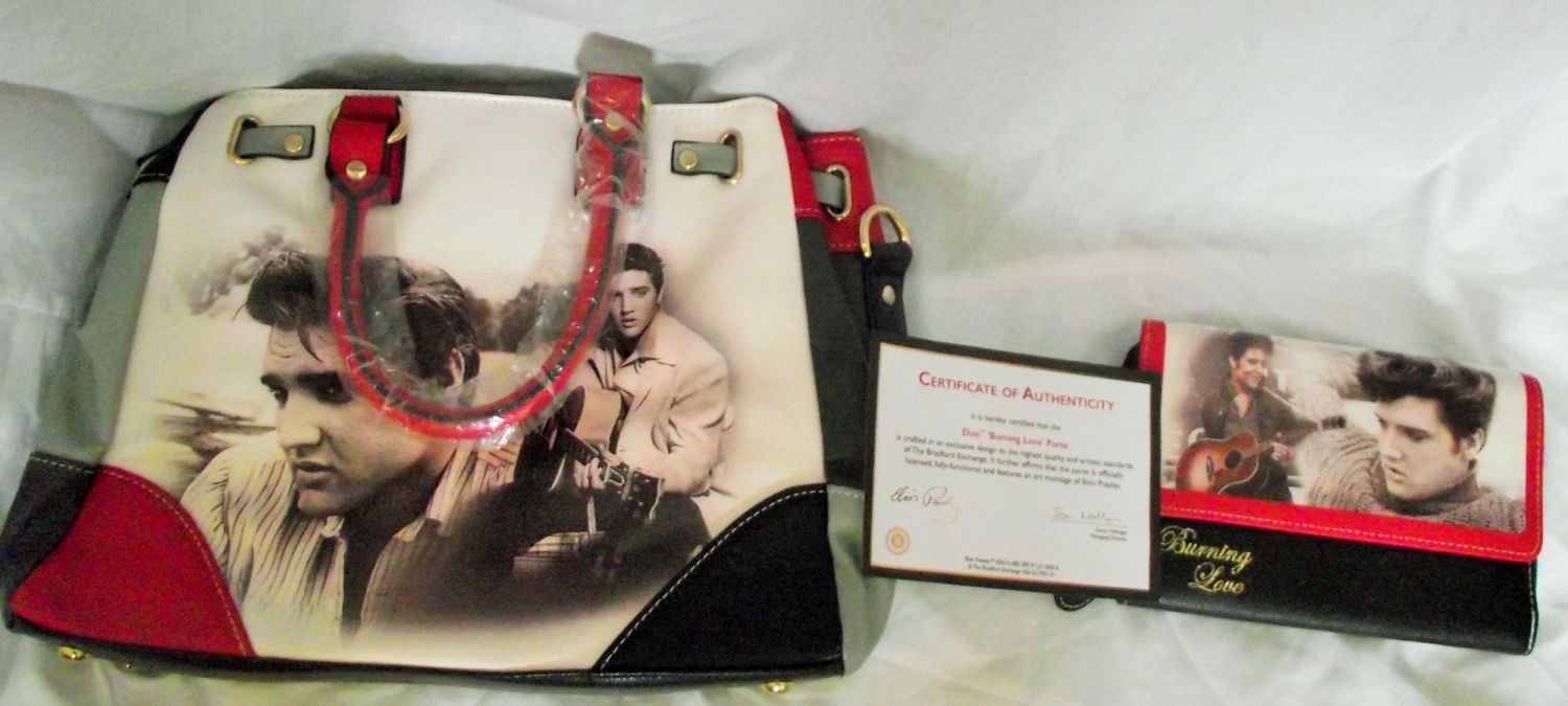 Elvis Burning love hand bag and matching purse as new with certificate