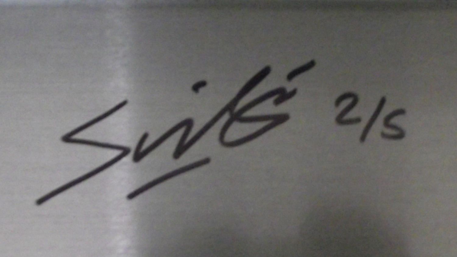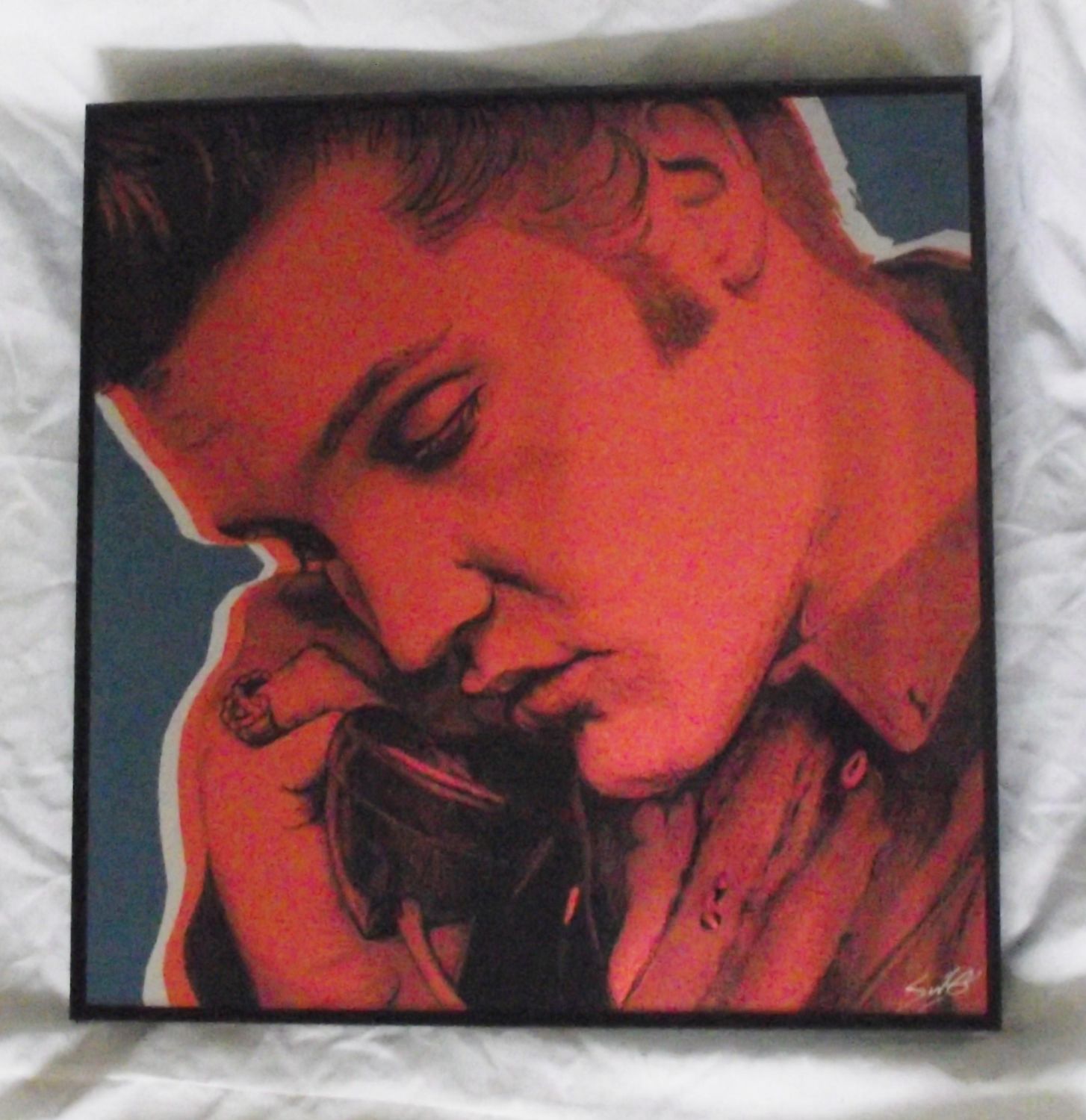 Rare Labrynth Gallery Brighton Elvis taking care of business pencil sketch/printmaking on brushed aluminium signed by artist Louis Sidoli with certificate of authenticity 16×16"