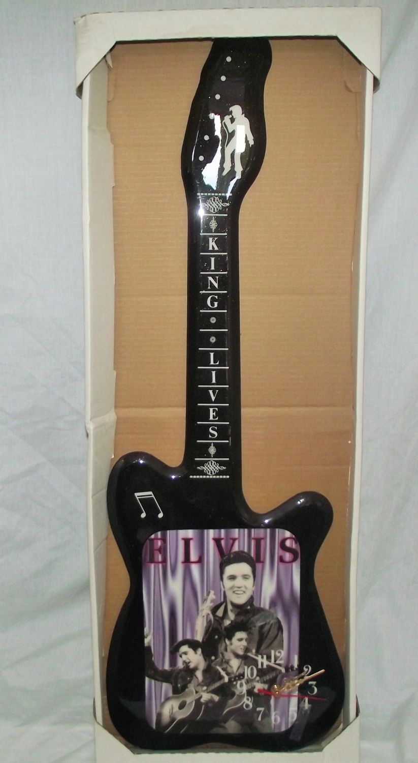 Black gloss Elvis guitar clock still packaged 32×11" shipped from las Vegas