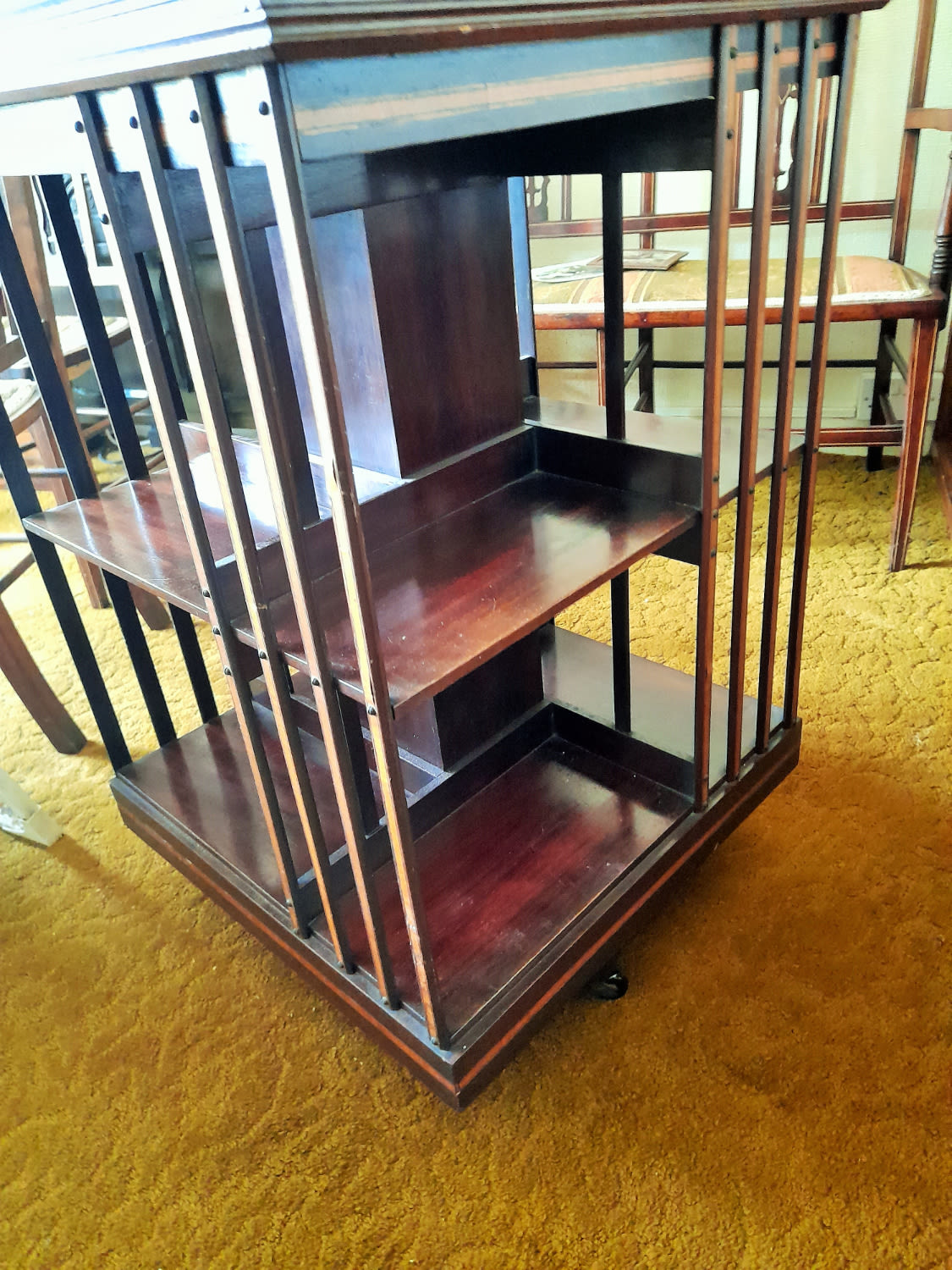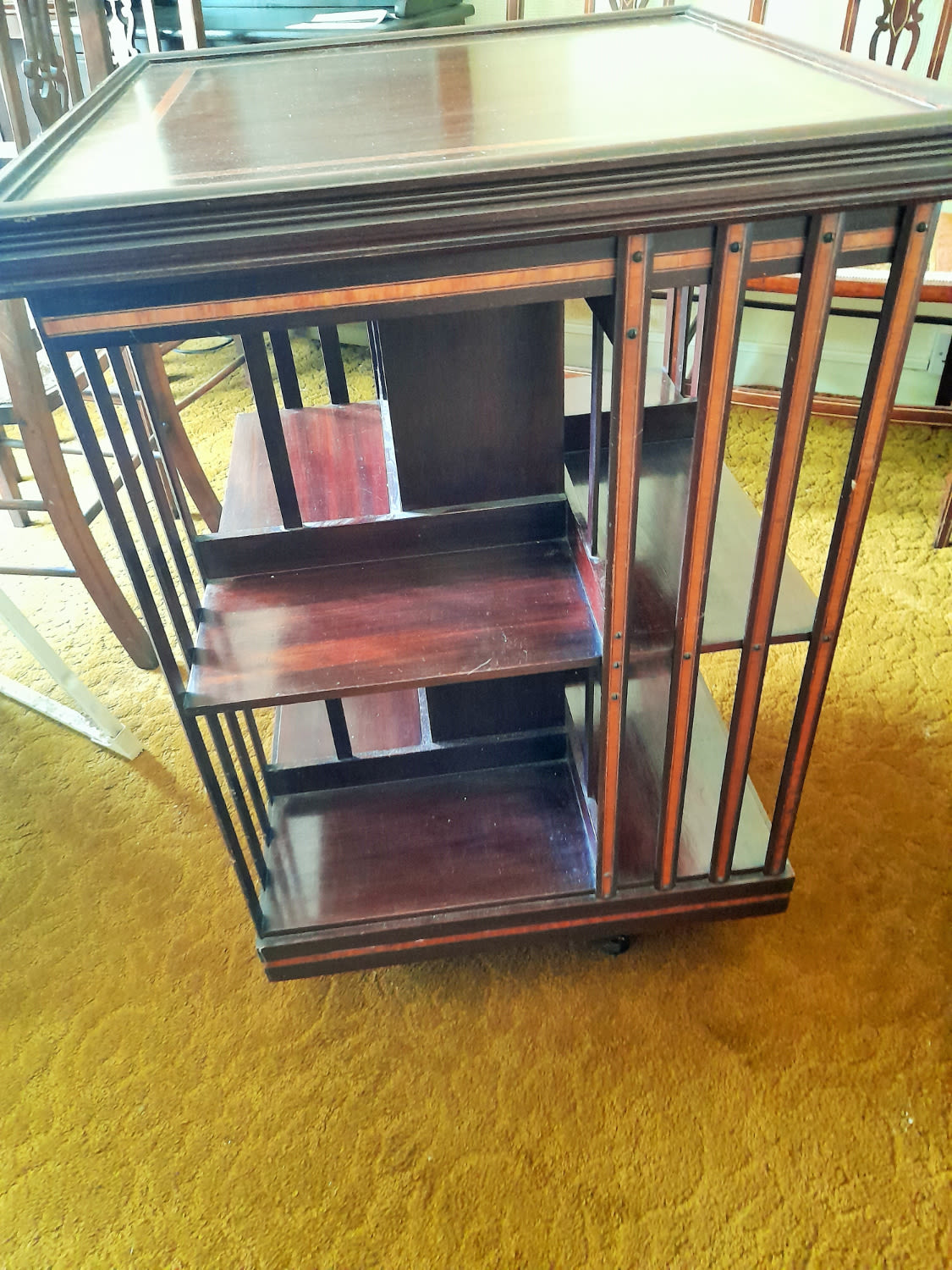 Edwardian inlaid revolving 4 sided library bookcase
