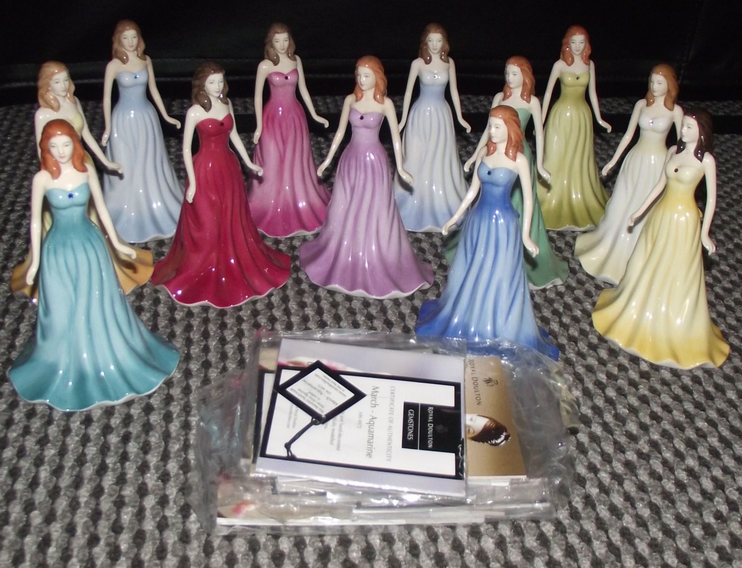 12x 7″Royal Doulton Month Gemstone collection figurines (10 with orignal certificates of authenticity)