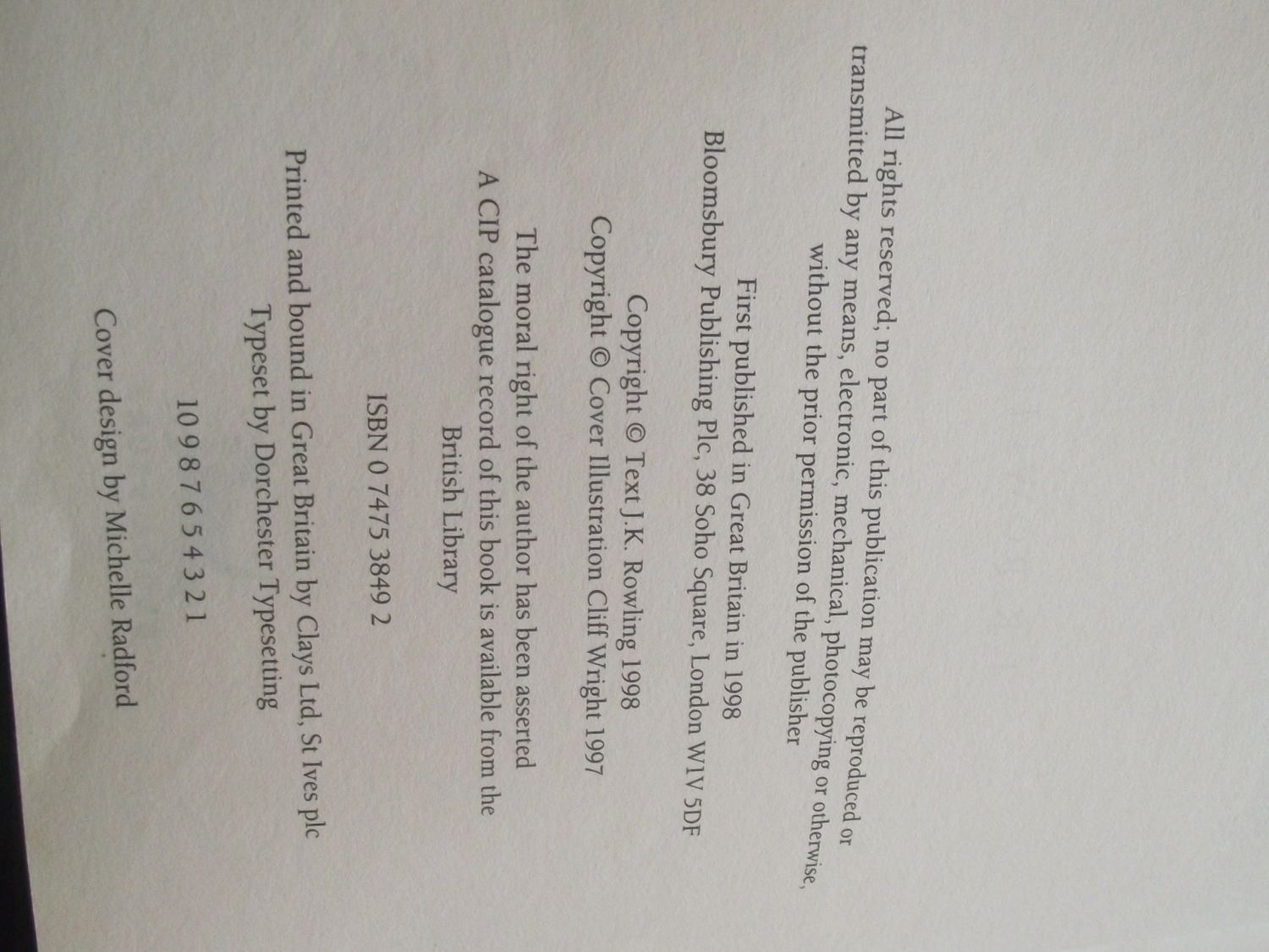 1st Edition J.K. Rowling. HARRY POTTER AND THE CHAMBER OF SECRETS. Bloomsbury,London 1998. ISBN: 0747538492 .1st print run on copyright page 10987654321, good overall copy slight toning to edge of pages , no dust jacket no writing or markings