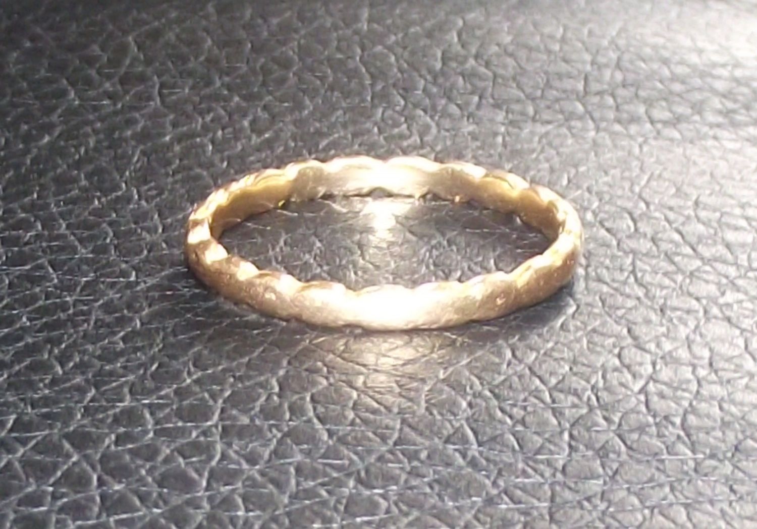 Ladies fully hallmarked 22ct gold band with an unusual indentation design to the edges of the ring forming the design 2.2g approx