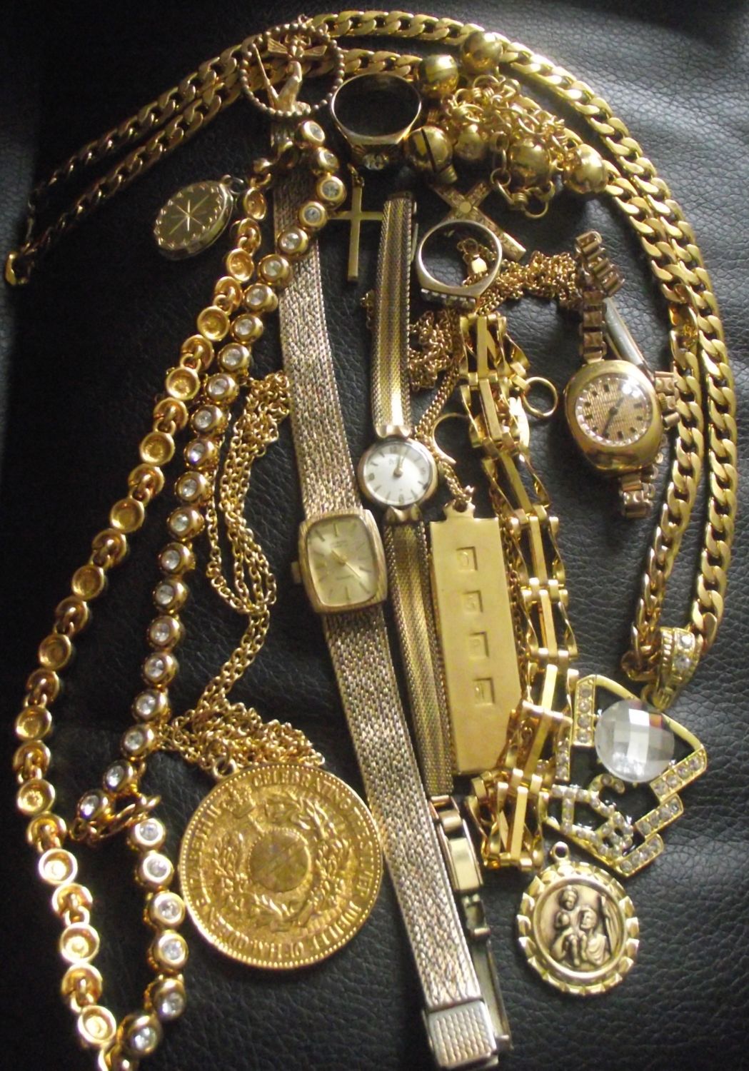 Good selection of rolled gold and plated watches and costume jewellery inc rings chains pendants ,sekonda ,Bebtina , Everite watches etc.