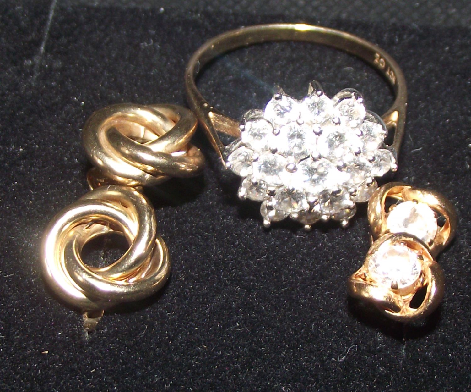 2 pairs 9ct gold earrings only 1 with butterfly backs + 9ct gold ladies dress ring 4.3g approx