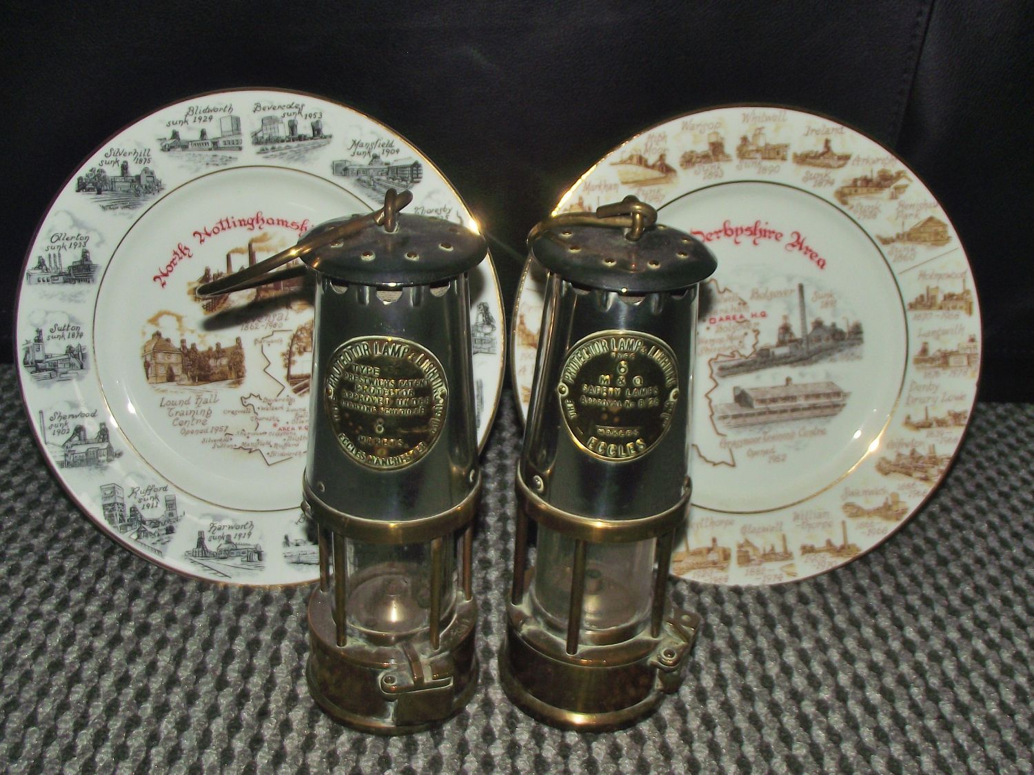 2x Type 6 Eccles miners lamps +North Nottingham & North Derbyshire area commemerative pit plates