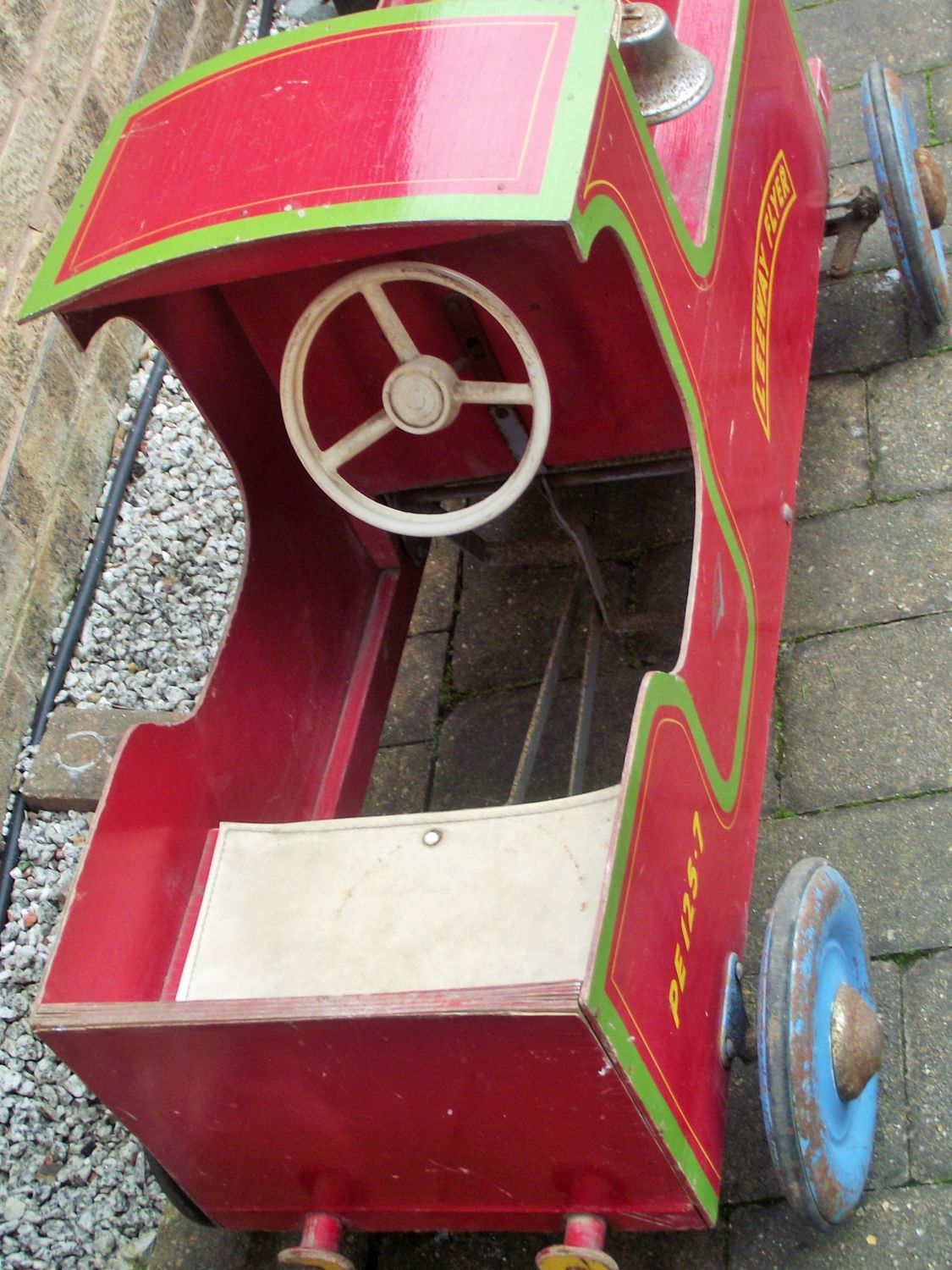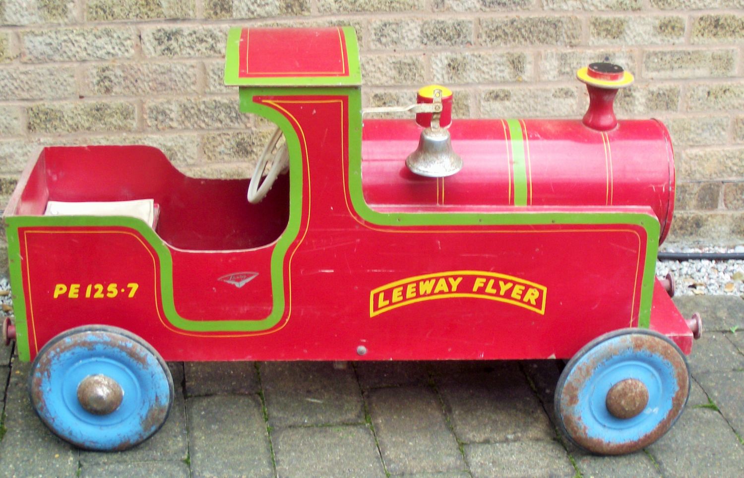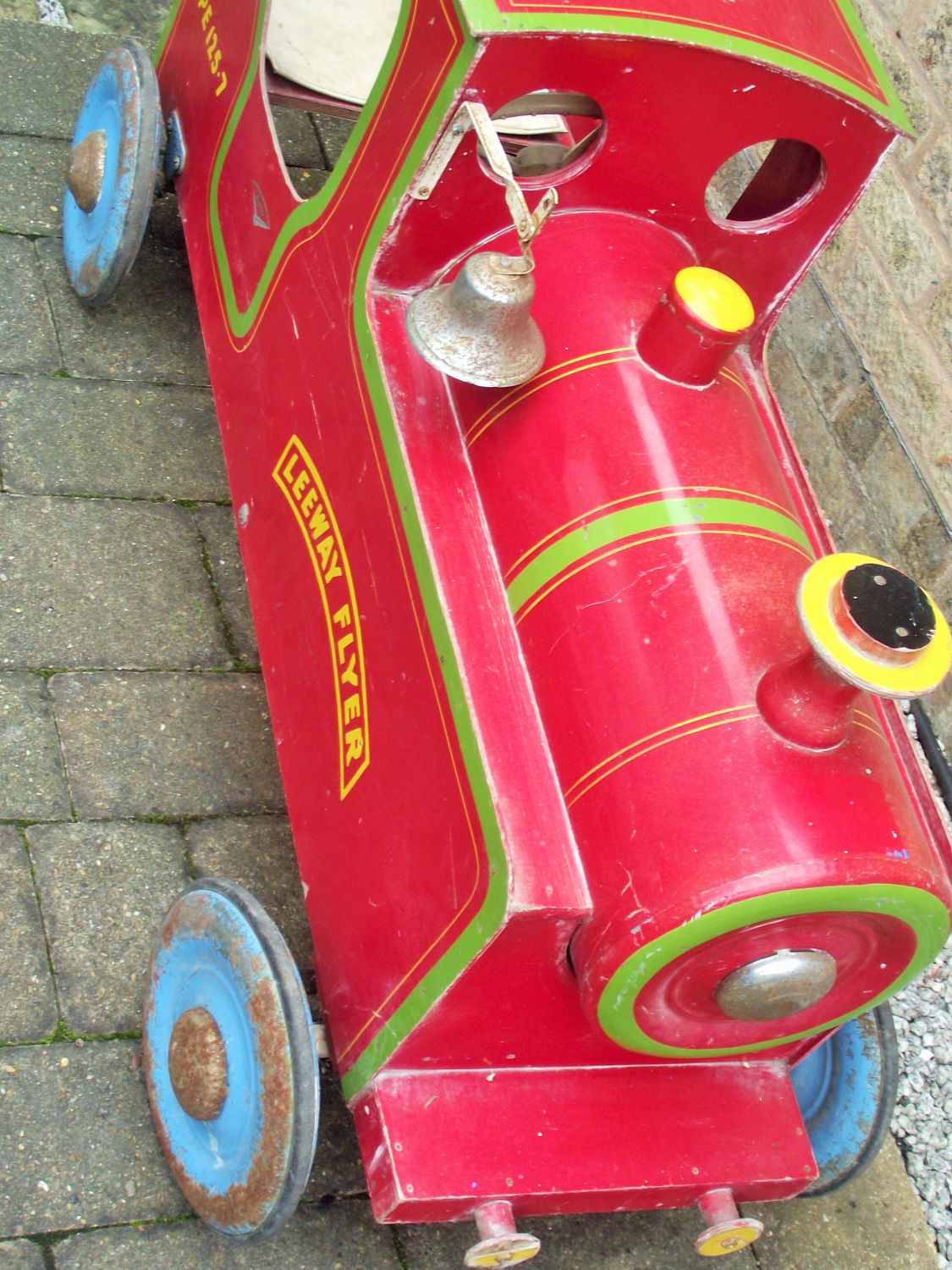 A wood and steel Leeway Flyer child’s pedal locomotive, 40×23″ approx