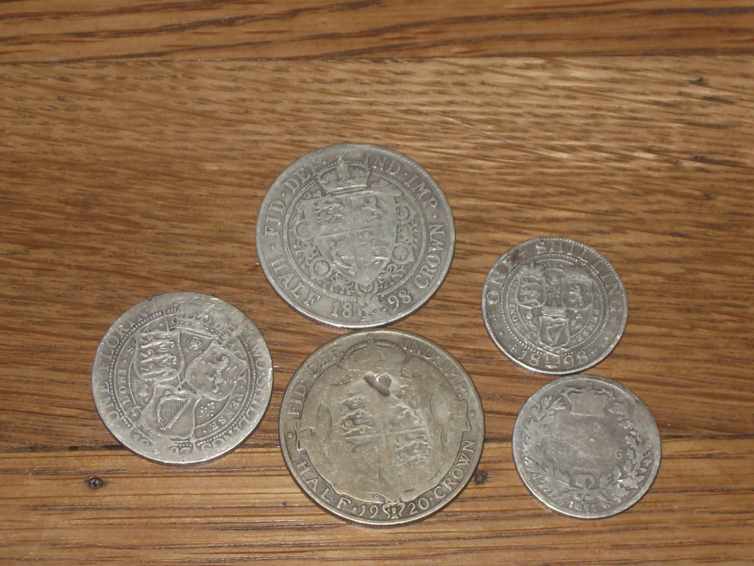 Scarce 1920 silver half crown + Scarce 1877 silver shilling +Scarce 1898 shilling +1898 silver half crown +1897 silver florin