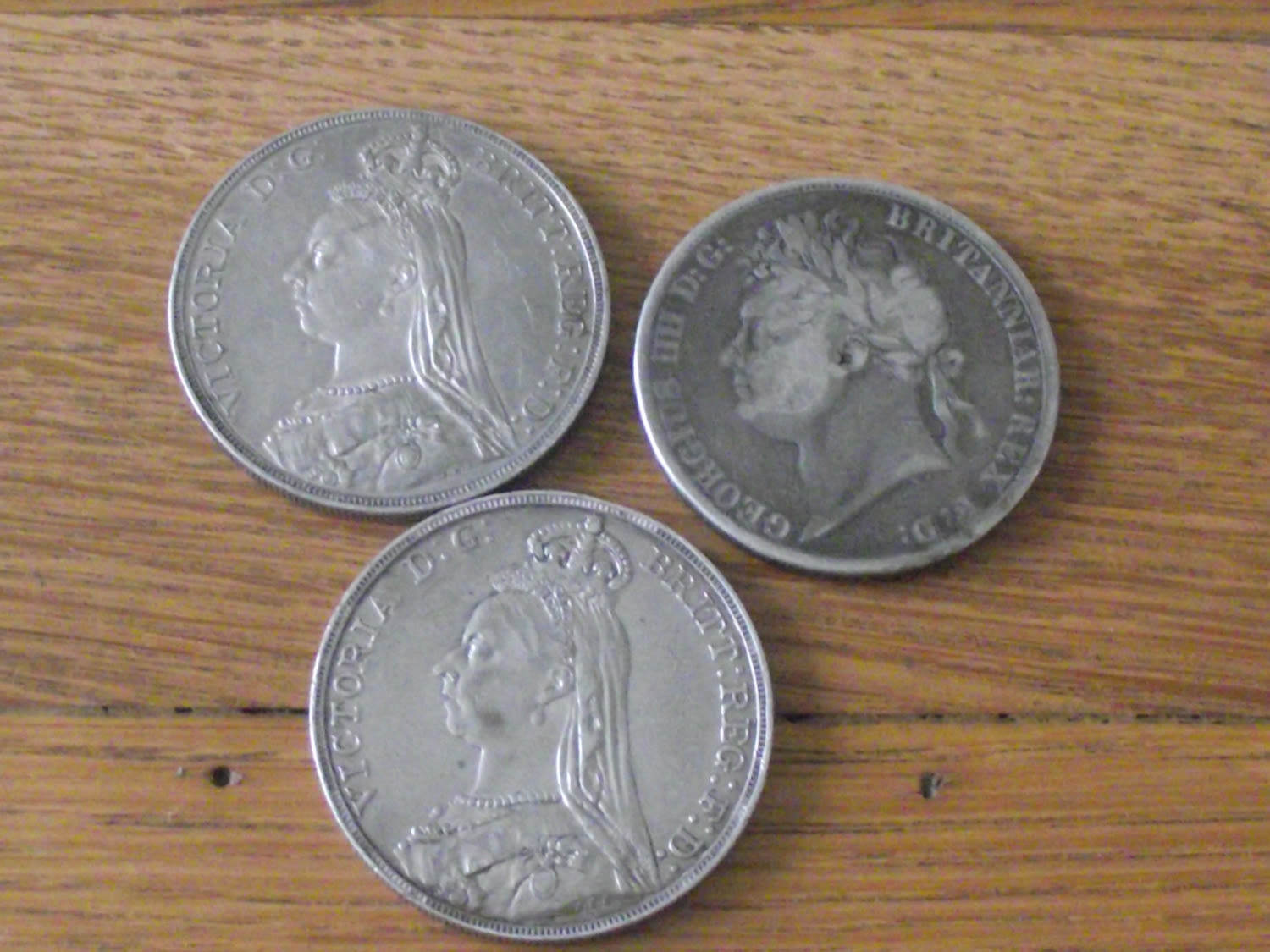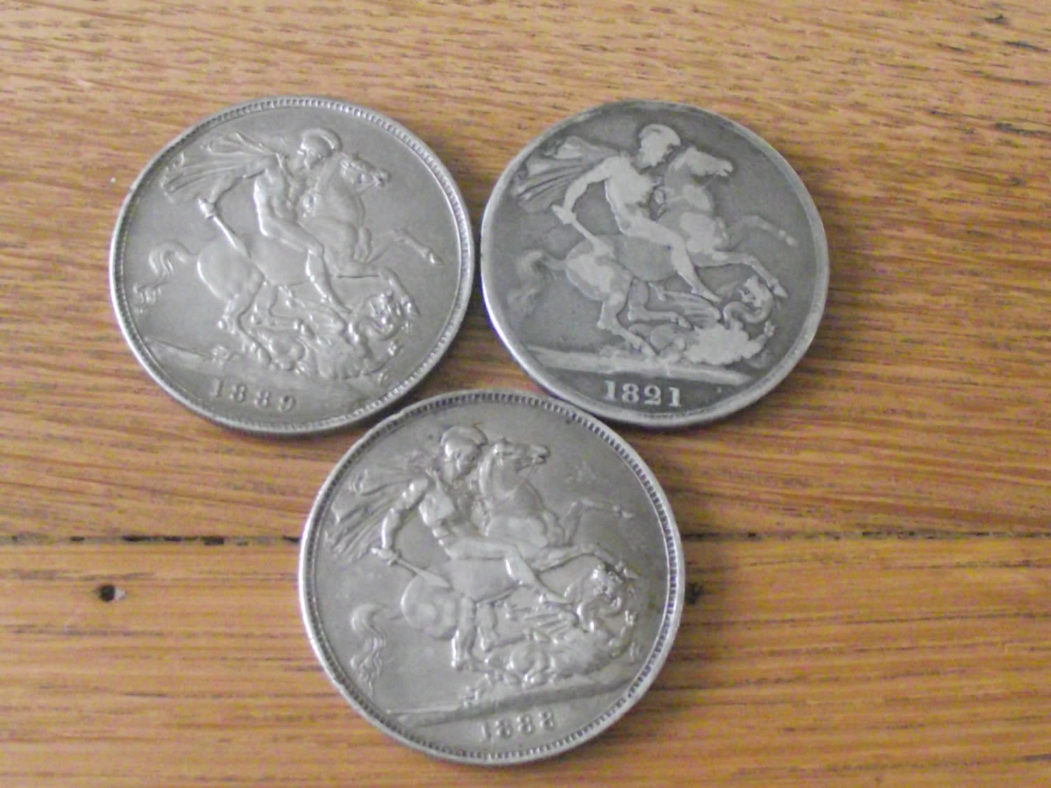 3 x Victoria silver crown coins dating 1821 ,1888,1889