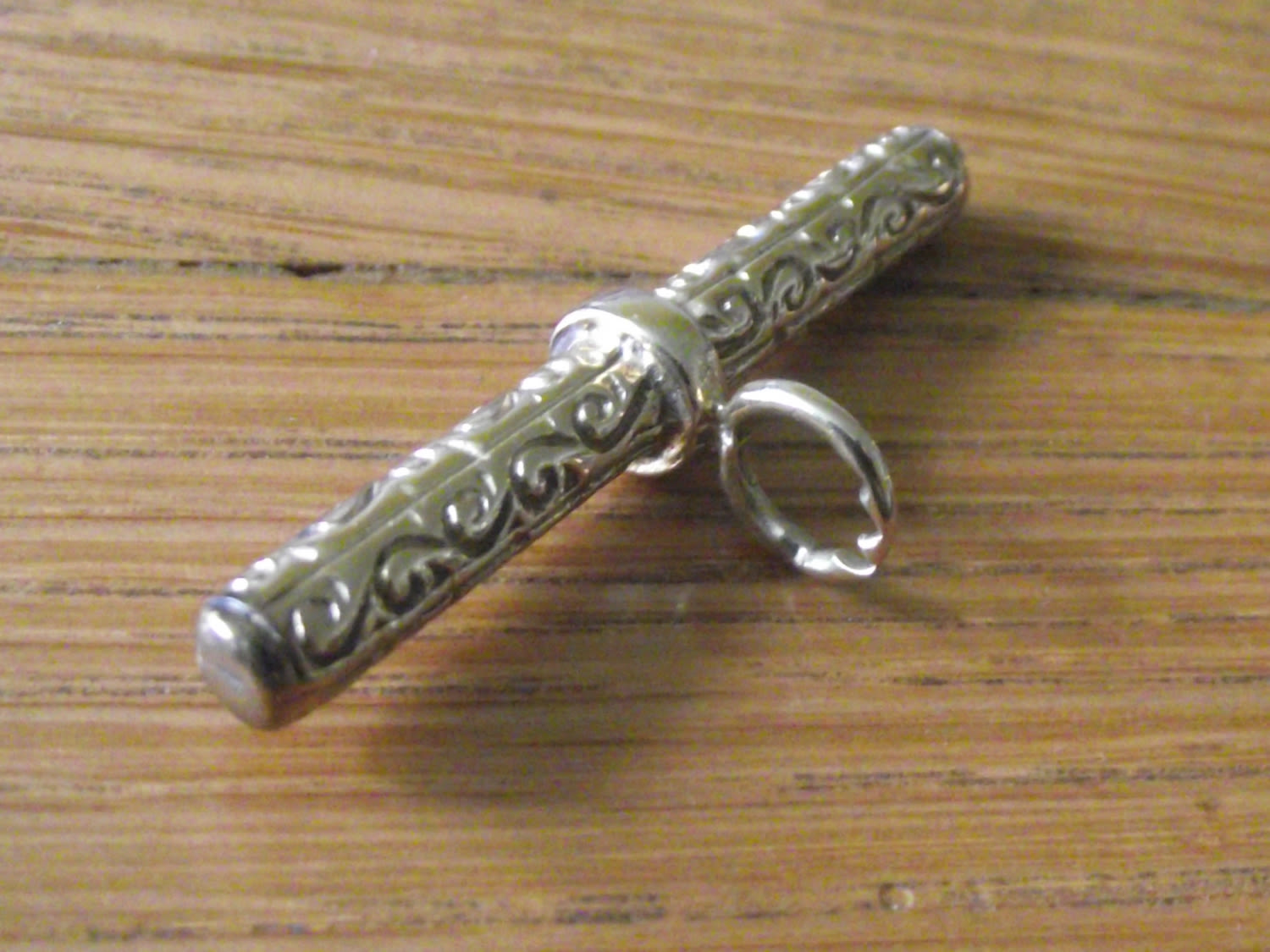 18ct gold ornate T bar ( marks rubbed on conecting ring tested as18ct ) 7.3g approx