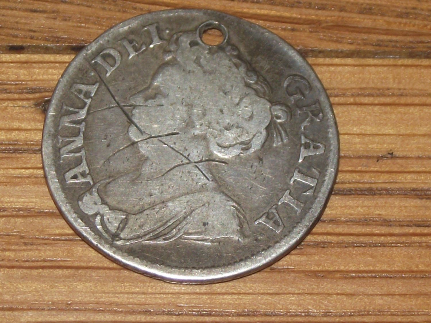 Rare 1711 Queen Anne silver shilling ( drilled)