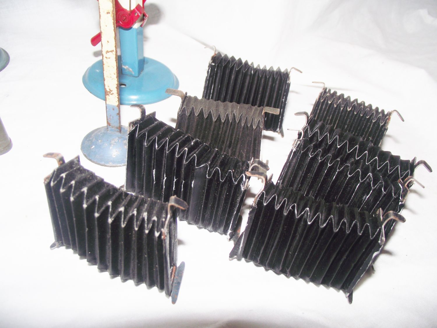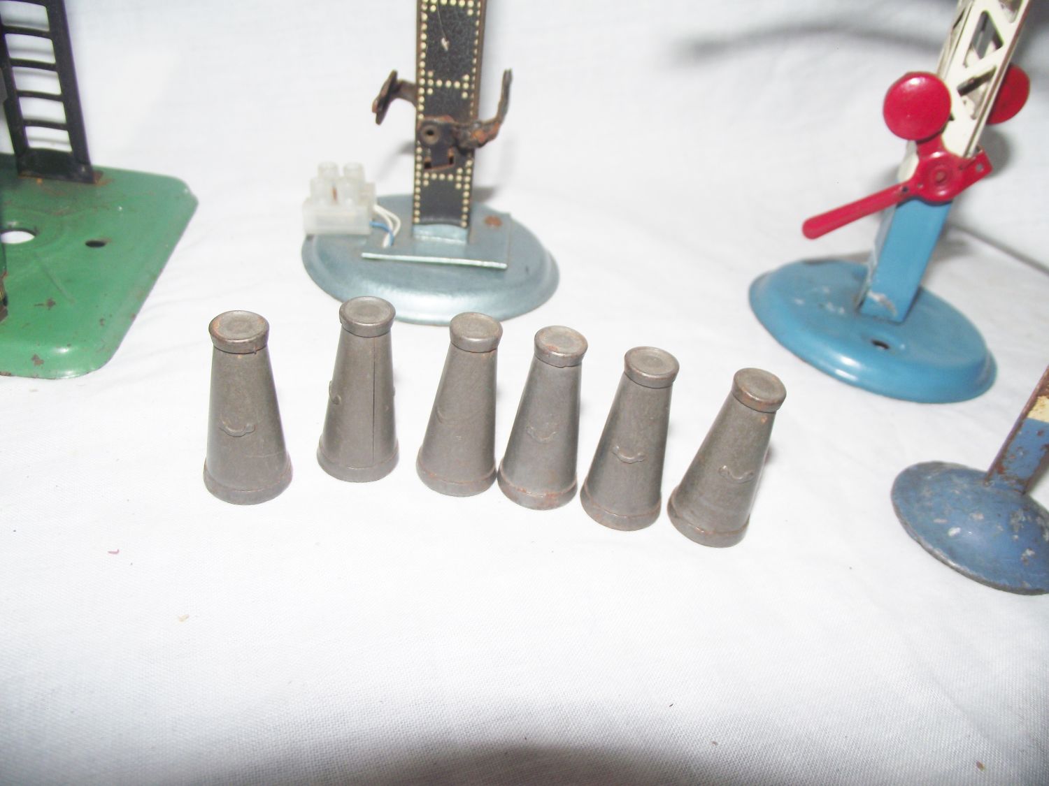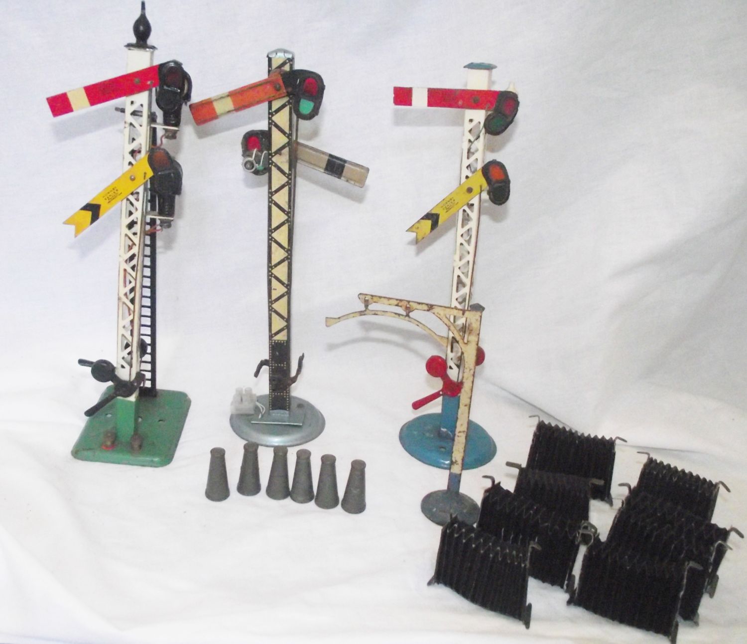 3x Hornby signals 2 electric 1 not + selection of 5 metal churns + set of 8 Rare coach corridor cocertina carriage conectors