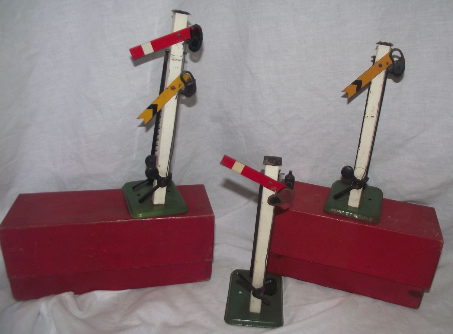 2x Hornby O gauge No2 single arm signal only I boxed + Hornby No2E double arm signal boxed