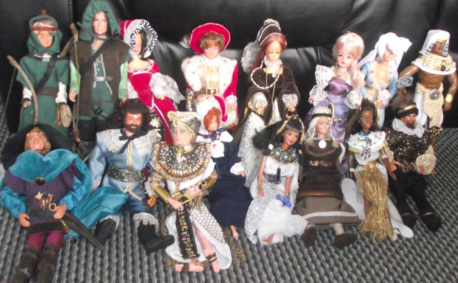 Selection of 12″ celluloid dolls depicting different scenes and fables in original dress