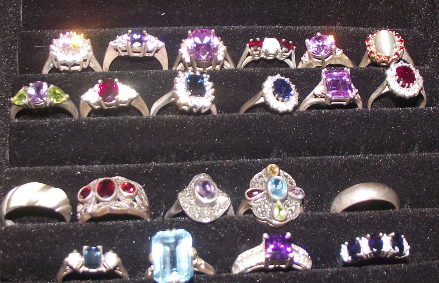 Selection of 21 Qvc style ladies dress rings all marked 925 ,display not included