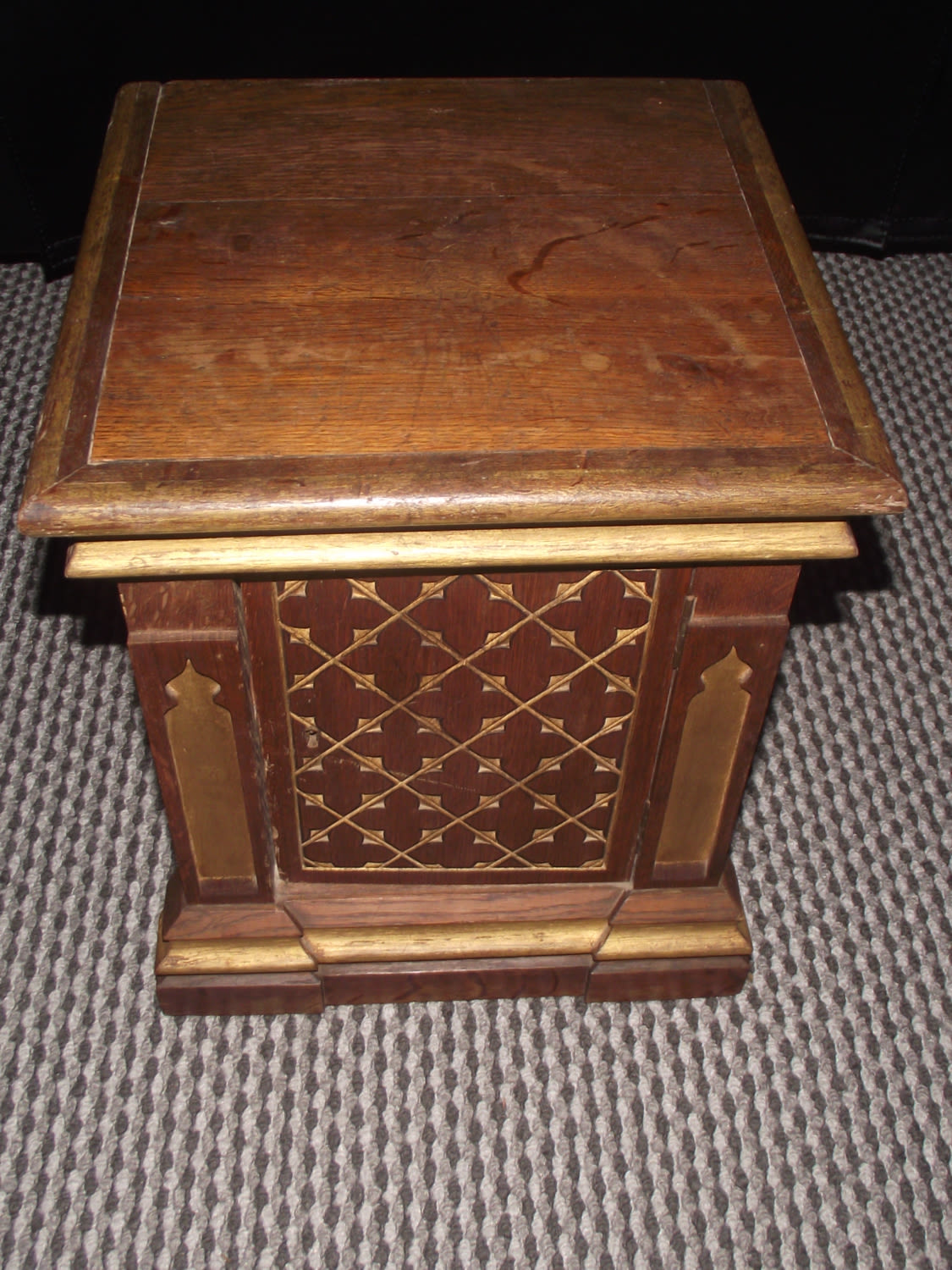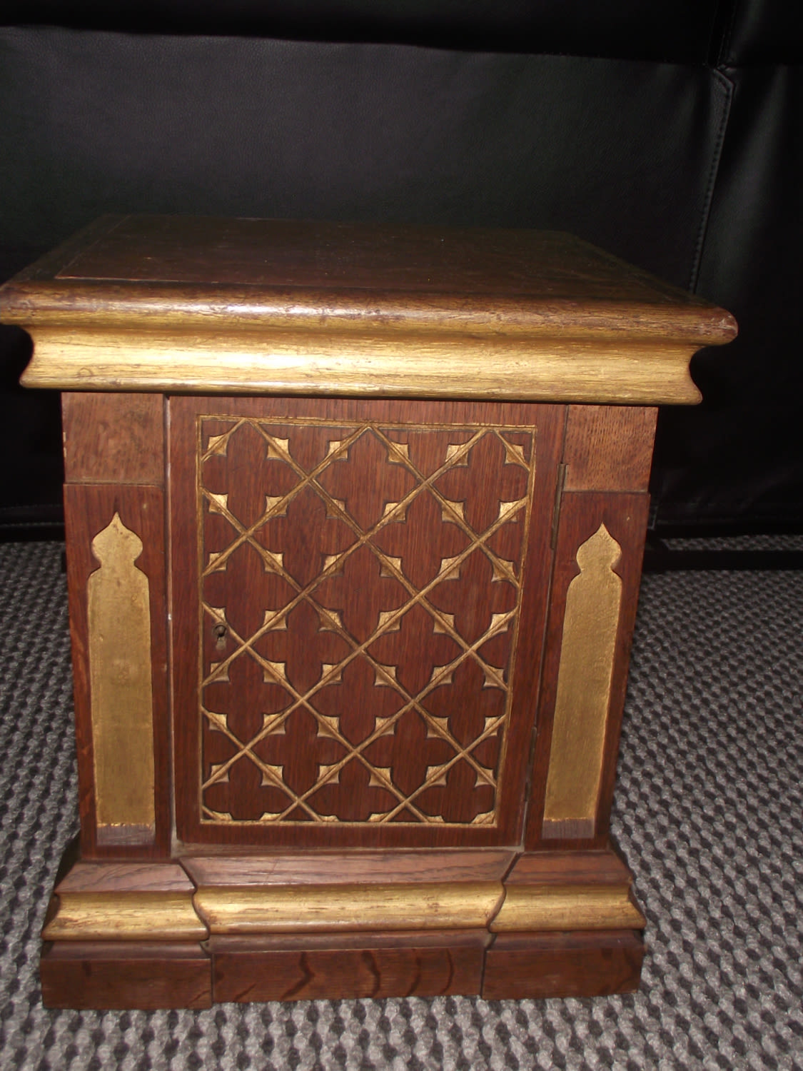Vintage wooden hand carved Islamic style Quaran box with highly detailed carving to front door 14x12x12″ approx