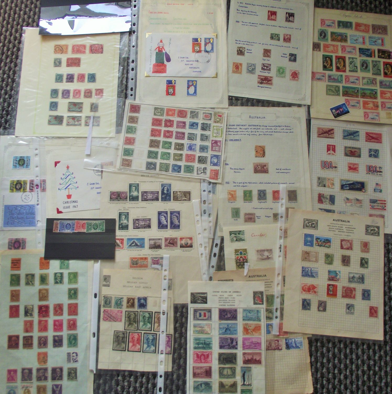 Nice selection of stamps in folders inc British 1966 Christmas GPO 1st day cover , USA 1/2 1 ,2 cents stamps , 2 newzealand Lake Wakitipu stamps ( Should read Wakatipu) also rare Belgan German american postage stamps