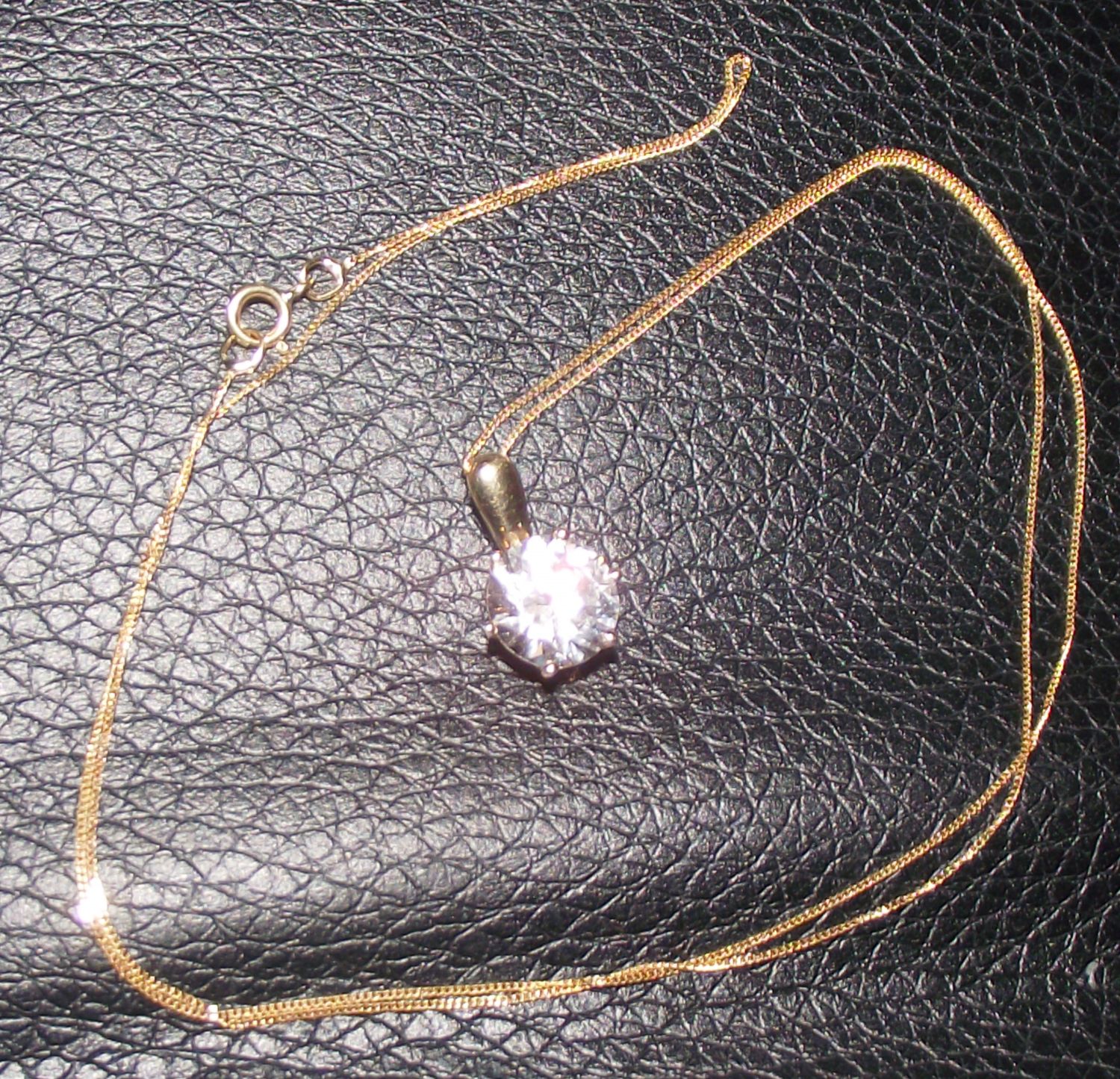 ladies 18″ chain and pendant chain marked 750 ,pendant marked 18k cz set with faceted CZ stone 1.8g approx